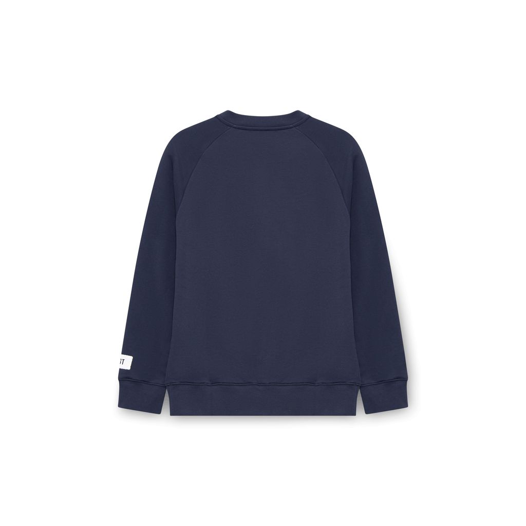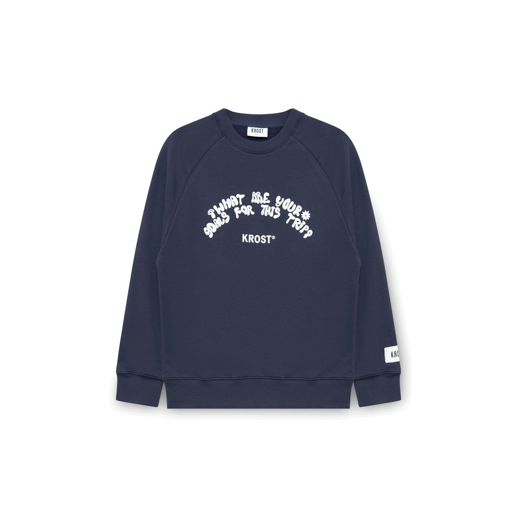 Crewneck sweatshirt with screen print at front. 52% cotton, 48% poly. Rib knit collar, hem and cuffs.