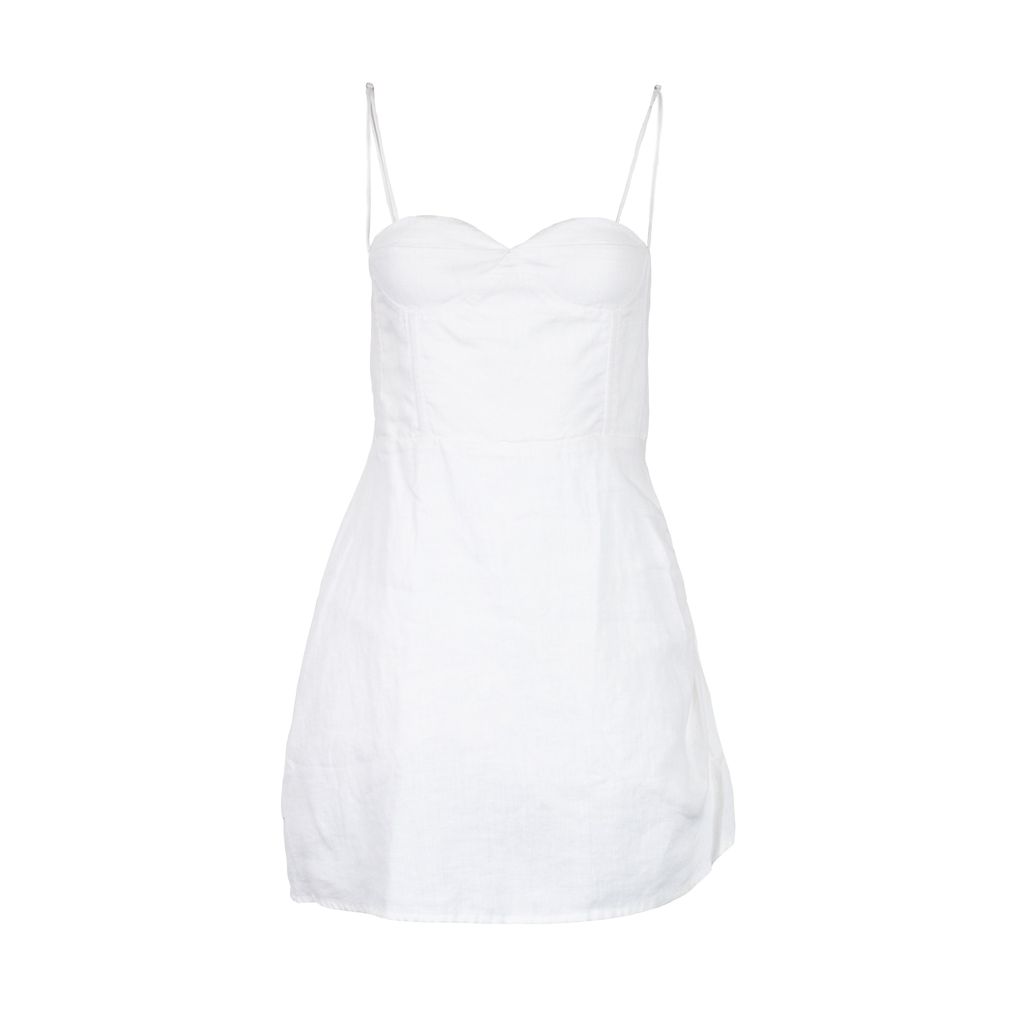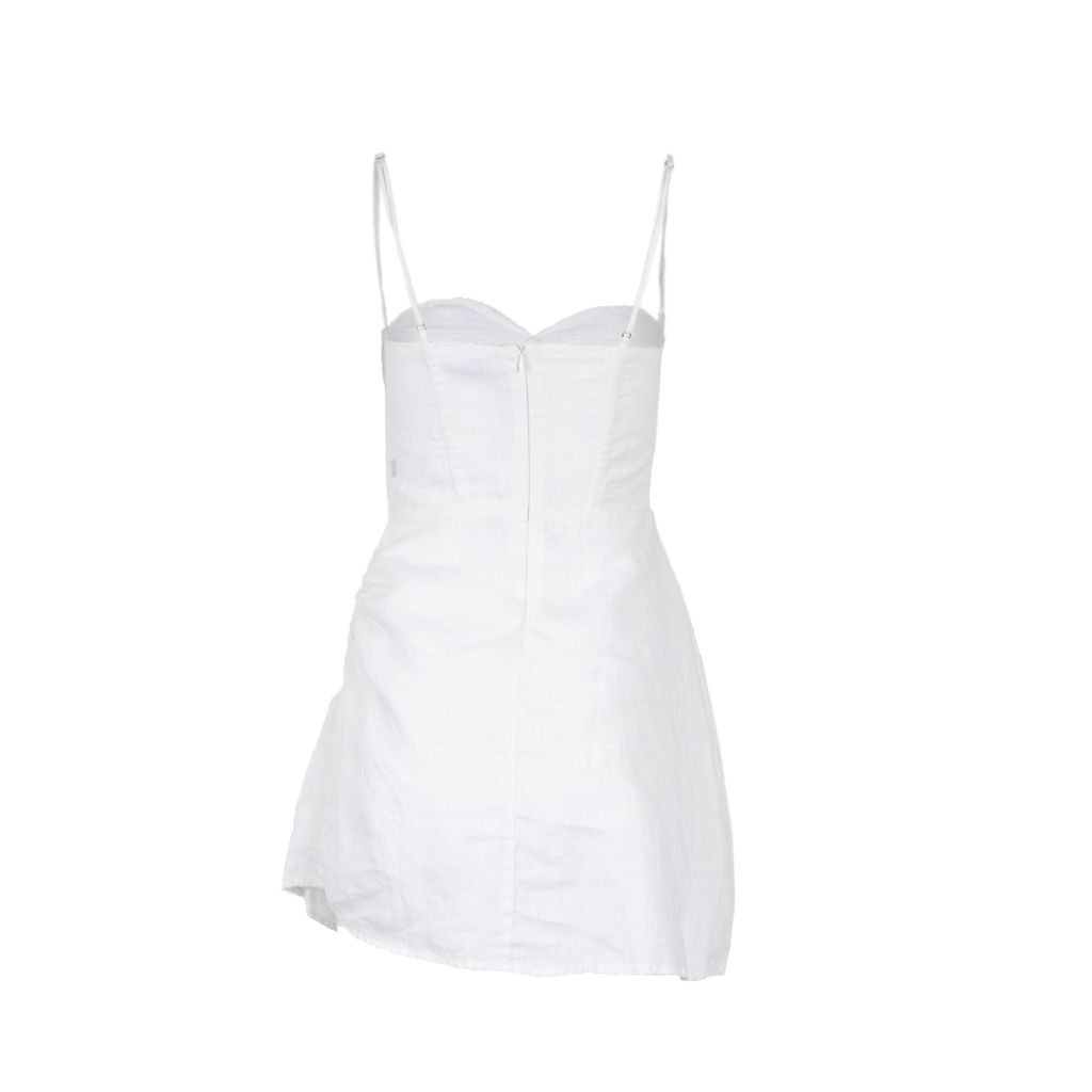 A gorgeous summertime staple, this lightweight dress from Trois is a no brainer when temperatures are sky high. Features sweetheart neckline with structural molded cups, adjustable ultra skinny straps, bodice style top, A-line style skirt, ruched detail on left side of skirt, and invisible zipper back closure.