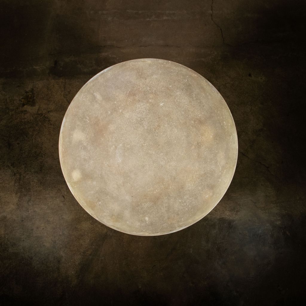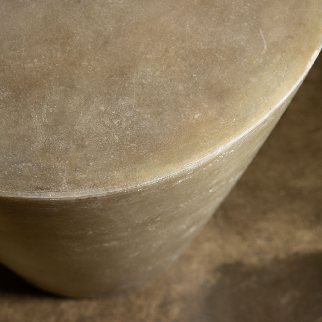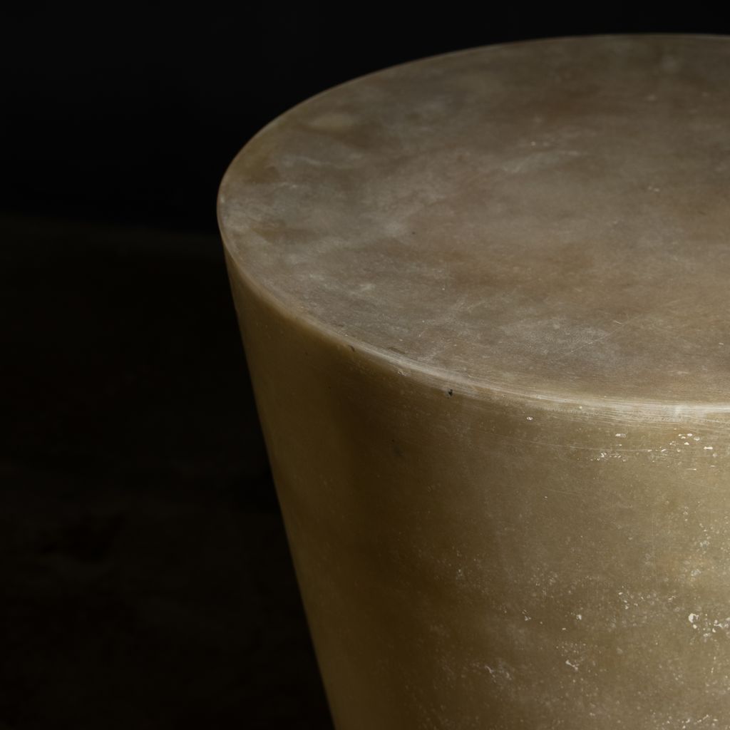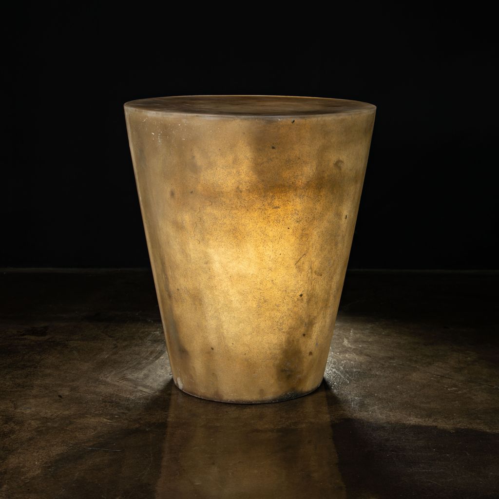 The Tromonto Crudo Side Table can function as an accent table or a low stool. Its unadorned geometric shape plays counterpoint to the smoothly sanded yet layered raw fiberglass finish, making each piece unique.
