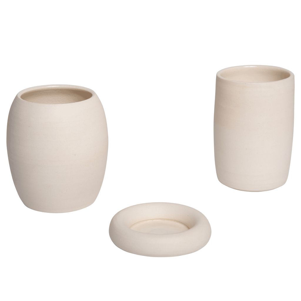 Tumbler 094 is a wheel thrown ceramic stoneware tumbler set with bubble coaster. This set includes 2 tumblers and 1 coaster and is a one of a kind pairing. Exterior surfaces are unglazed white stoneware with a clear glazed interior.