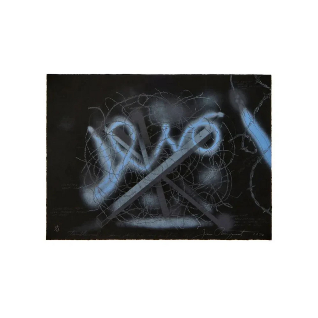 James Rosenquist (American, 1933-2017), a conceptualist in pop drag. In every major collection of 20th C American art. This work is from 1970, was printed by Castelli Multiples, and depicts a sculpture in barbed wire and neon that the artist produced in 1967.
