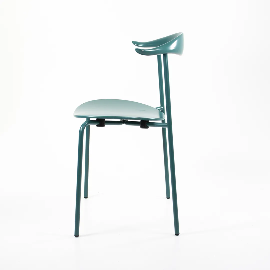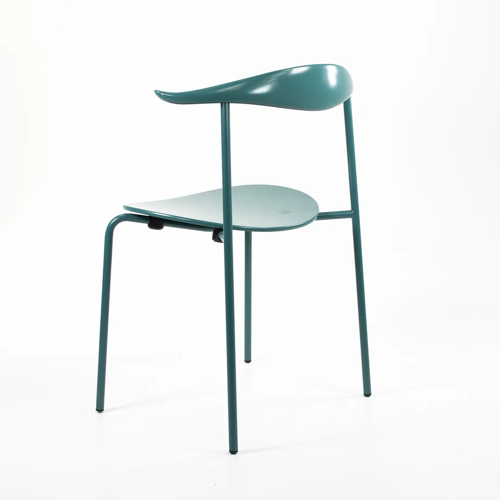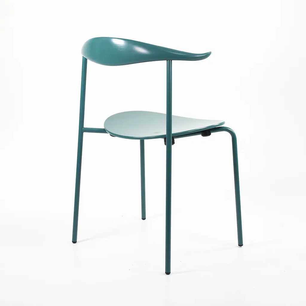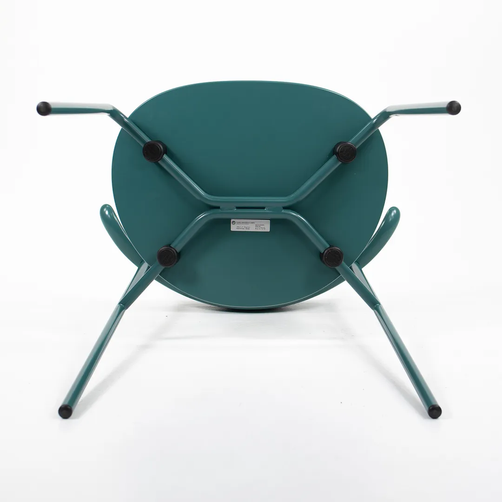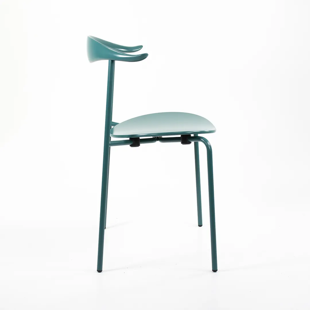 This is a CH88T dining chair made with a turquoise powder coated steel frame, beech back and wood seat. The chair was designed by Hans Wegner and produced by Carl Hansen & Son in Denmark. The chair dates to 2021 and is guaranteed as authentic. Condition is excellent with a slight circular rub mark (barely visible) on the seat and a tiny nick to the paint on the corner of the back. This would be easy to touch-up if desired. See photos. This chair came directly from Carl Hansen. It was likely never used in a home or office setting but may have been a display model within their showroom.