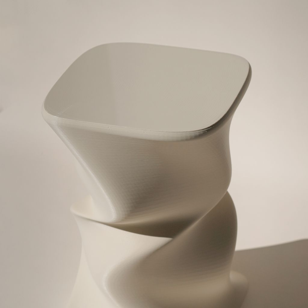 Designed by US artists Tanil Raif and Daniel Vi Le, the Twist Side Table pushes the boundaries of 3D printing while maintaining a sleek aesthetic.