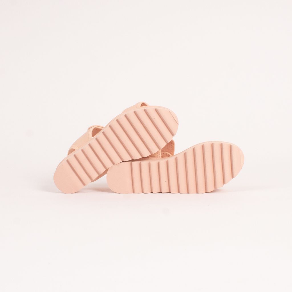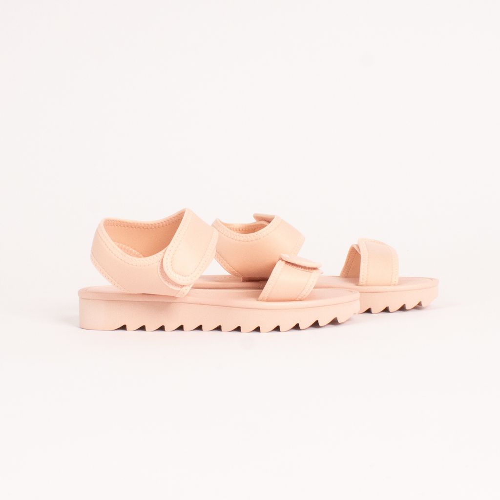 From Aussie sandal brand Twoobs, come these low platform sandals in a millennial pink color way. Features double strap design with velcro closure, ridged sole, and memory foam insole.