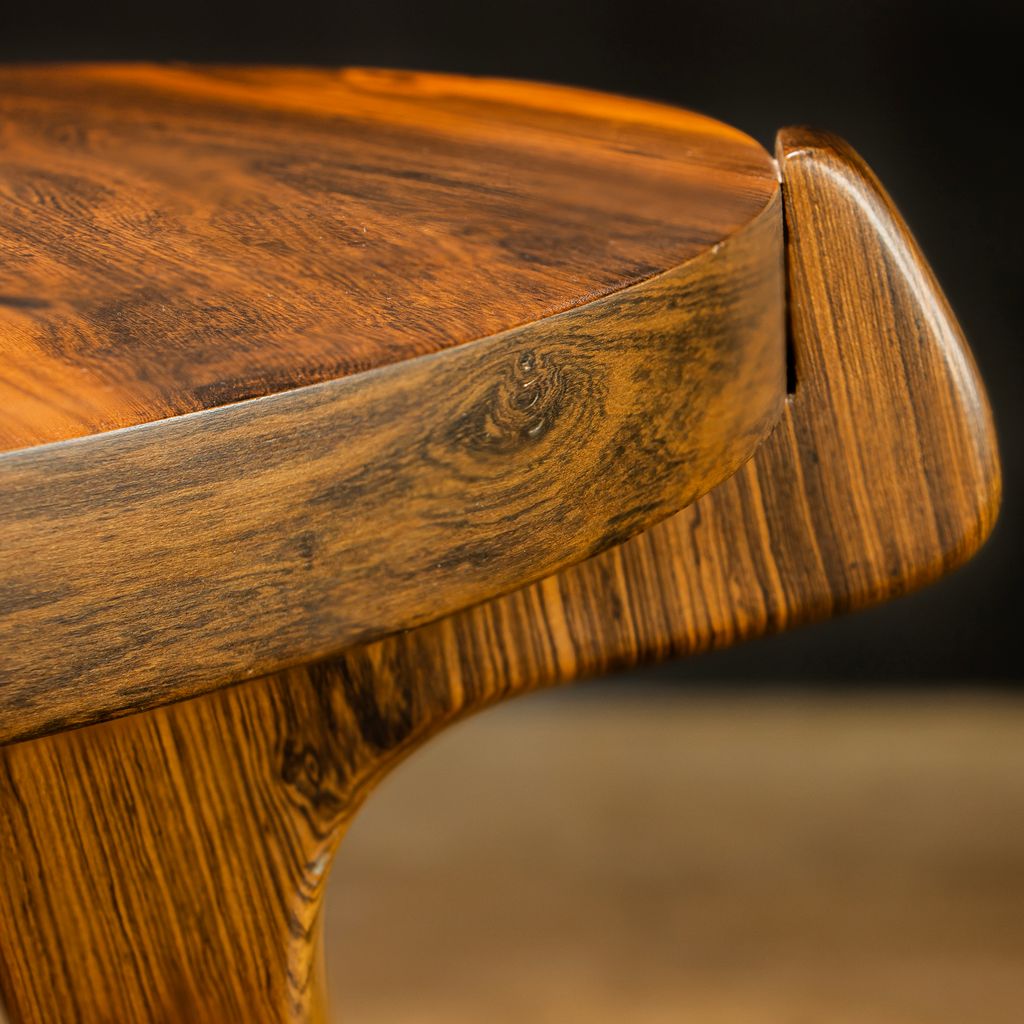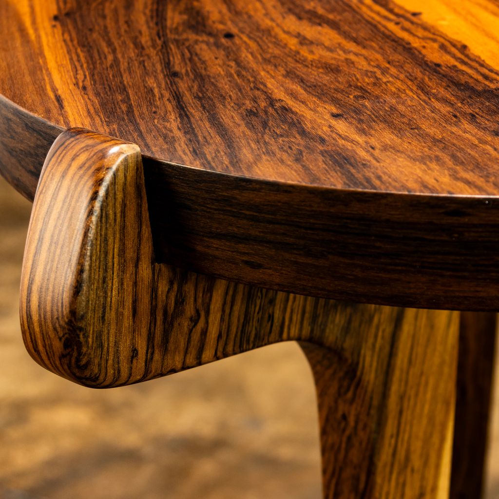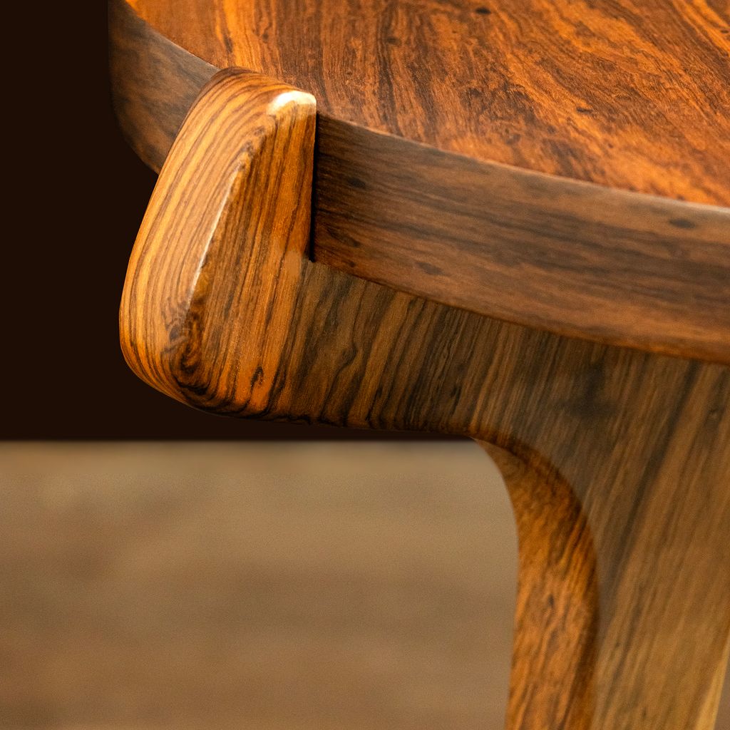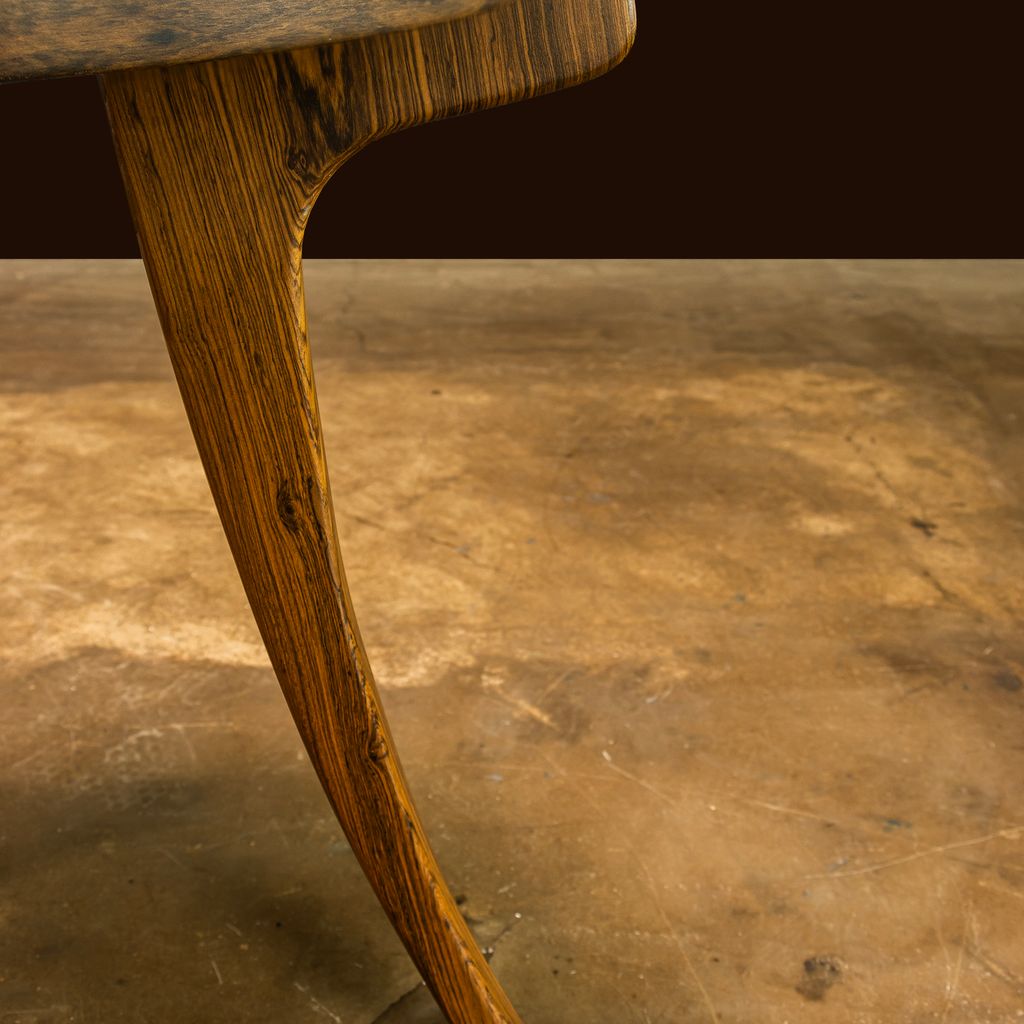 The sabre-legs of the Uccello Table give a nod to the form of the timeless Klismos chair, and subtly rise above the surface by a few millimeters. Shown in natural Argentine Rosewood, but can be specified in any combination of solid wood for the legs, and veneer for the top.
