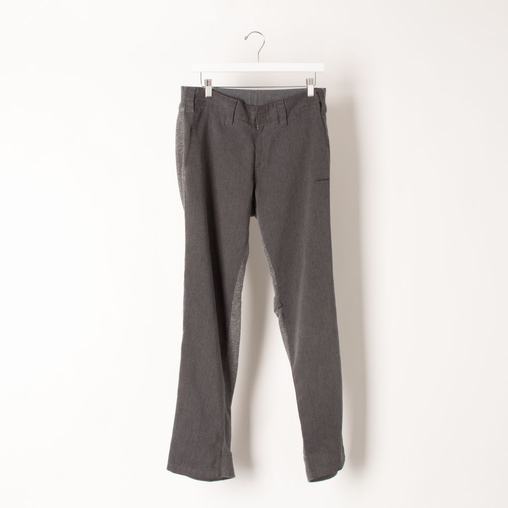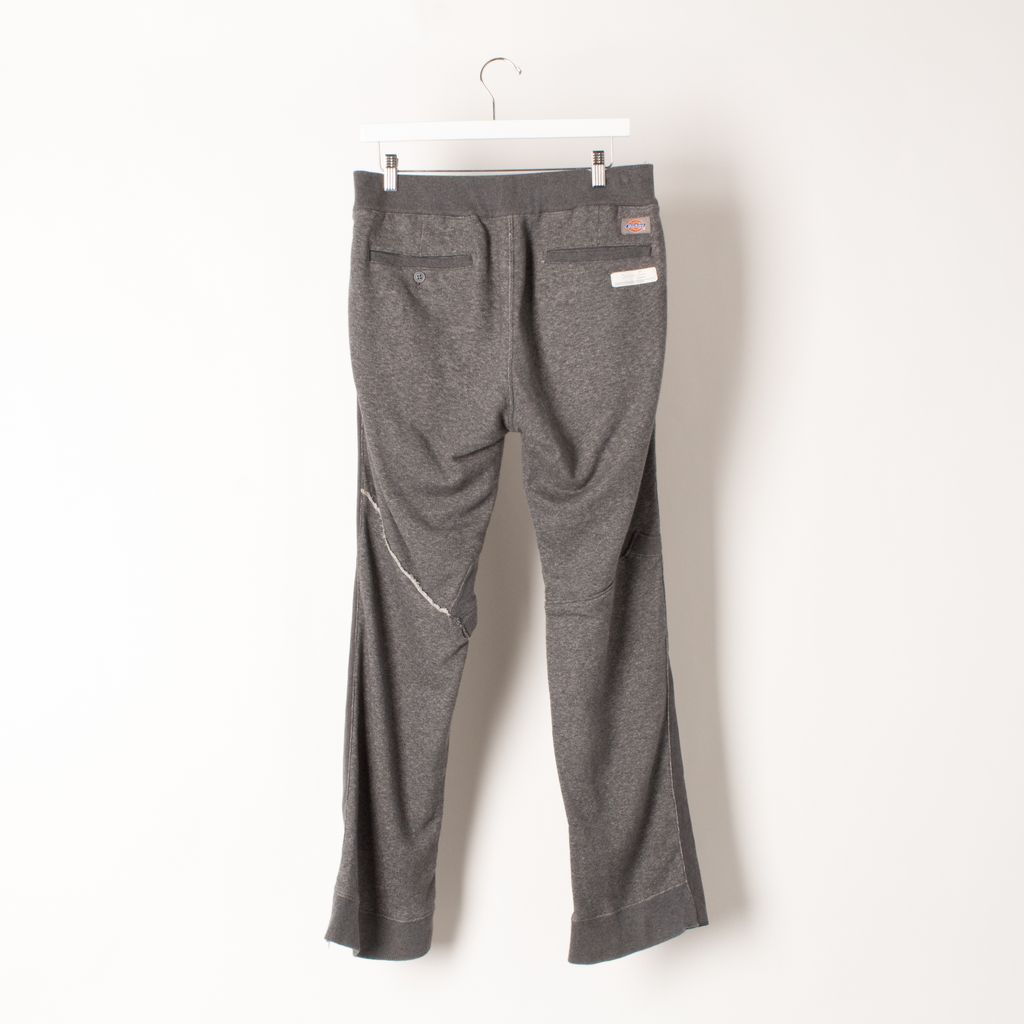 Like new, men's hybrid pant from exclusive Undercover x Dickies collaboration. Feature a trouser front with zip fly button closure and hybrid sweat pant material on backside of pant. Custom distressing throughout, double back pocket and embroidered tolerance graphic on front hip.