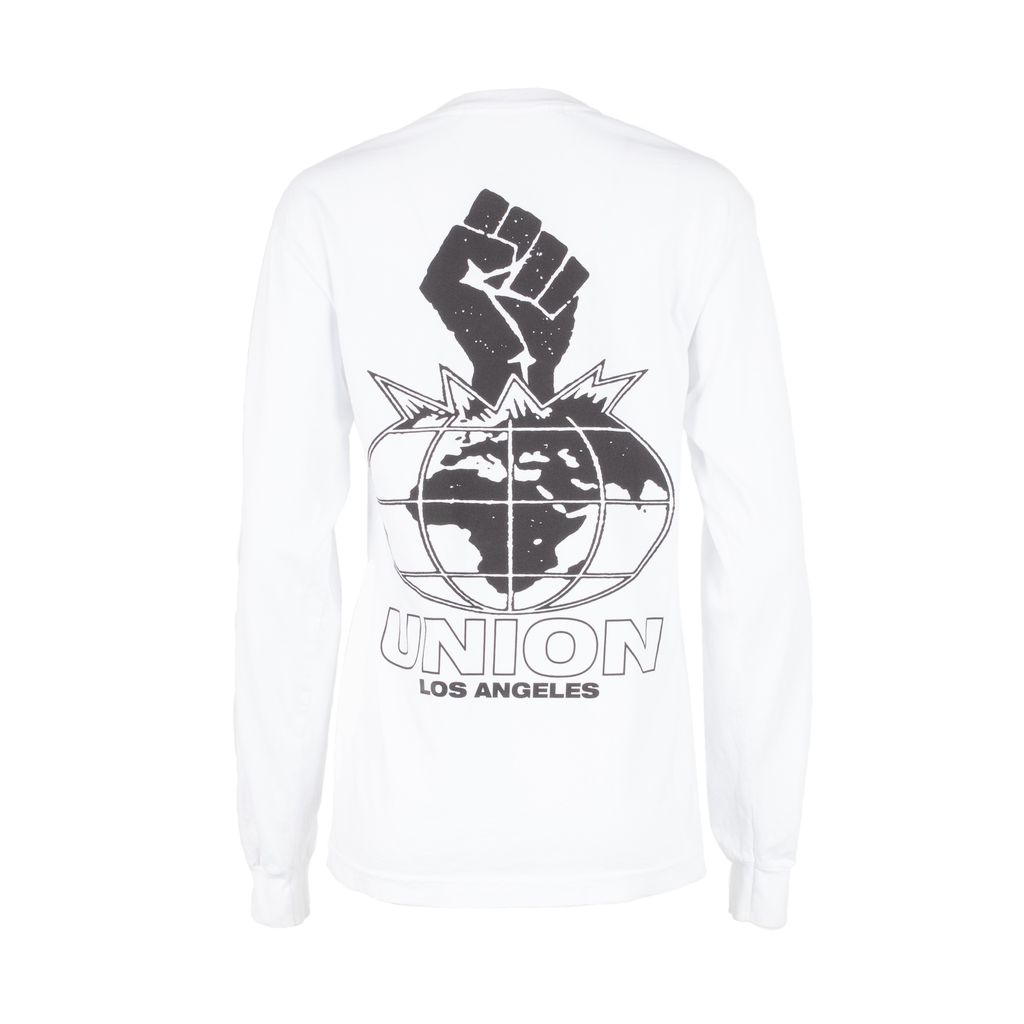 A Los Angles favorite for their great selection of streetwear, this long sleeve from Union Los Angeles comes from their own design vault. Features crew shaped neck, drop shoulder sleeves with repeating world breaker graphic, Union logo on left side of chest, and full back ULA world breaker graphic.