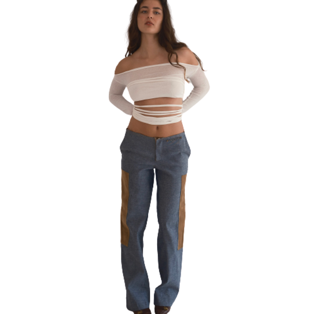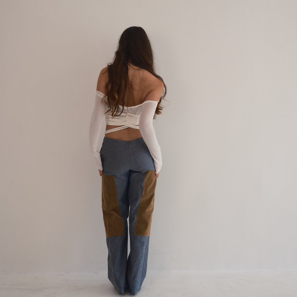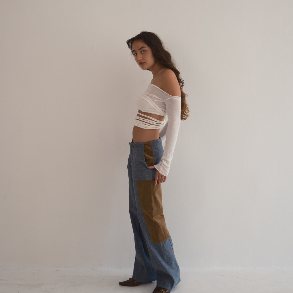 Cocoon fit. Signature VETTESE metal logo. Raw edges. Zipper fly. 1 ½” hem. Slightly over-sized for a relaxed sexy fit. Dry clean. Iron low temp. Do not bleach. Do not tumble dry. 100% recycled cotton - minimizing carbon emissions and embracing a culture of sustainability. Made in Los Angeles.