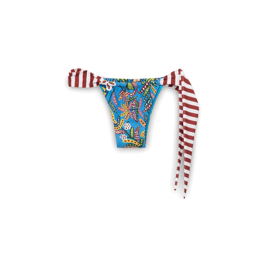 Isabel is a German-Brazilian fashion designer based in Milan. As the Founder and Creative Director of MIZZ Studios, she has featured in Vogue Italy, described as one of the top fashion school graduates and young designers to watch. After a summer in Rio inspired by the Cariocas on Ipanema beach, Isabel conceived the “Água Sagrada” collection. Enriched with joyful naïf - art style prints, framed by white and red stripes- and a random pattern placement technique, each piece in the Agua Sagrada collection has a singular yet interchangeable meaning. Each bikini top can be mixed and matched with each bottom, giving you the freedom to customize your own swimwear set. With sustainability at heart, these pieces are made in London with premium fabrics such as ECONYL® regenerated nylon that consists of recycled ocean waste. The iconic Brazilian collection is defined by comfort, vibrance and durability.