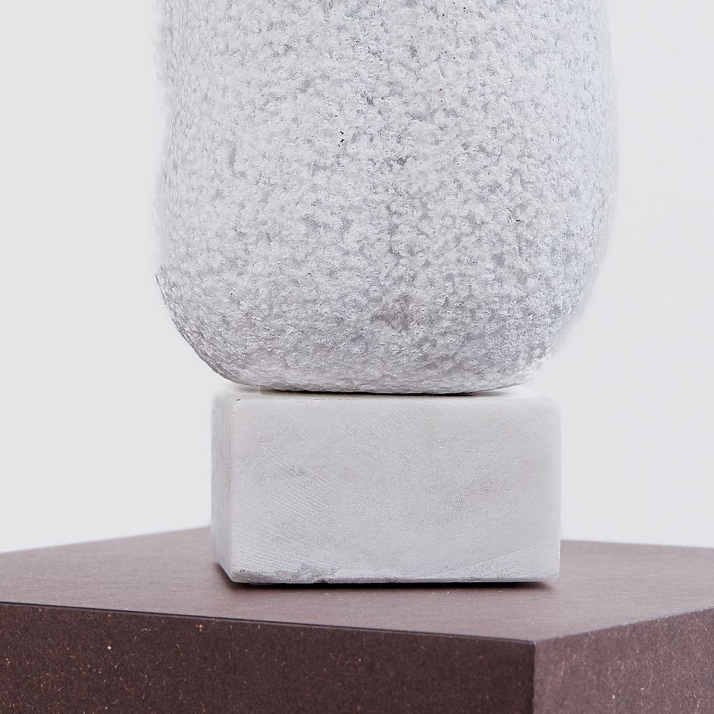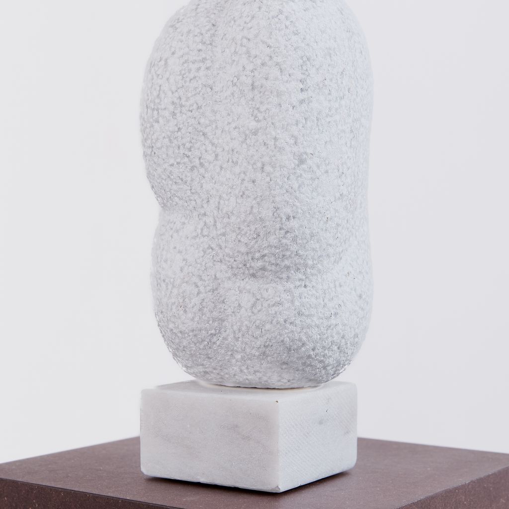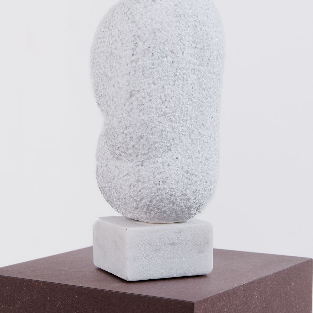 Untitled work with biomorphic form, in stippled Carrara marble by the late Polish-Swedish artist Anna Mizak (1939-2019). Anna Mizak was born in 1939 in Poland. She studied at the Academy of Fine Arts in Warsaw and later at the Royal Institute of Art in Stockholm. In 1968 she settled in Stockholm but worked internationally. She remained active as an artist until her passing in 2019. Her works are represented, among other places, in the collections of Moderna Museet.