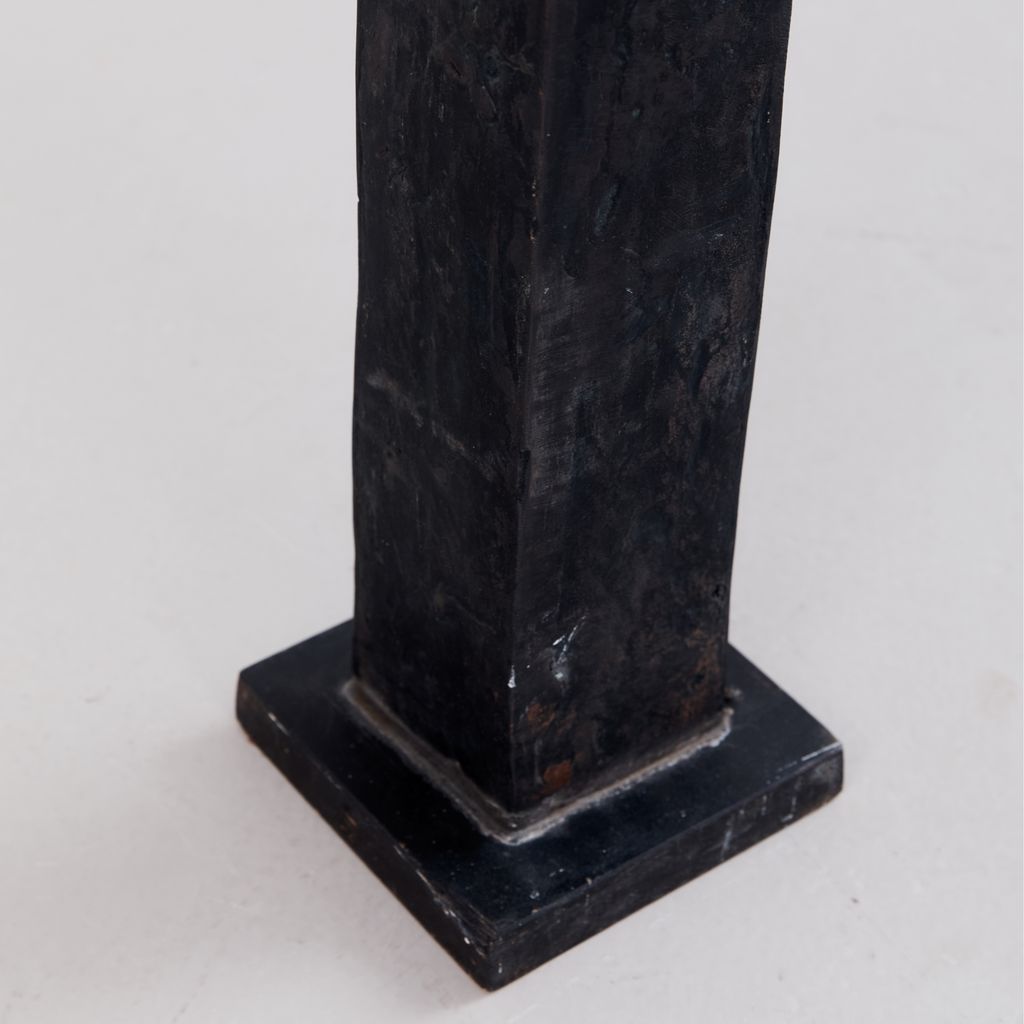 Untitled patinated bronze work, mounted on painted wooden plinth by the late Polish-Swedish artist Anna Mizak (1939-2019). Anna Mizak was born in 1939 in Poland. She studied at the Academy of Fine Arts in Warsaw and later at the Royal Institute of Art in Stockholm. In 1968 she settled in Stockholm but worked internationally. She remained active as an artist until her passing in 2019. Her works are represented, among other places, in the collections of Moderna Museet.