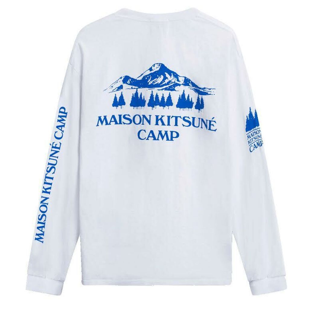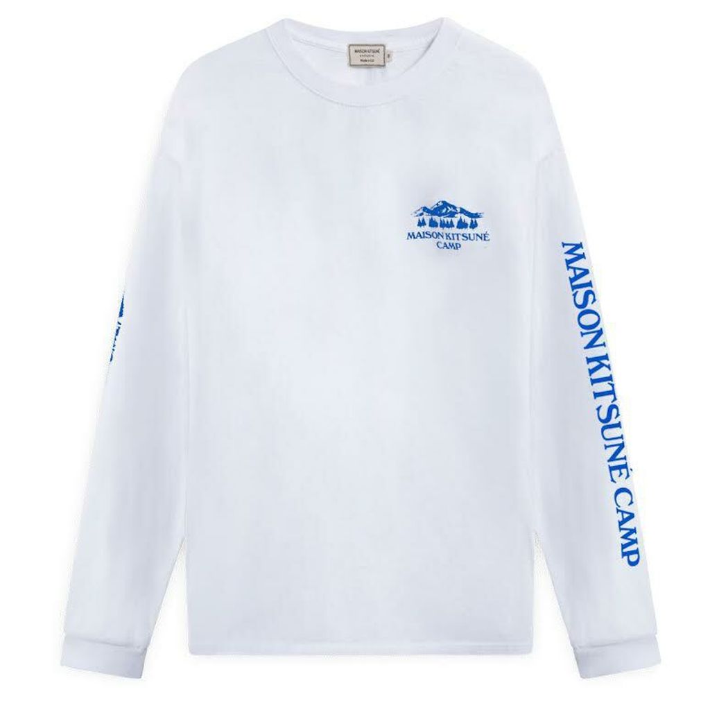 Unisex long sleeve cotton jersey t-shirt. Loose fit with “Maison Kitsuné” flocked on the breast, back and sleeves. This cotton t-shirt features a loose unisex fit, a crewneckline, and dropped armholes and long sleeves.