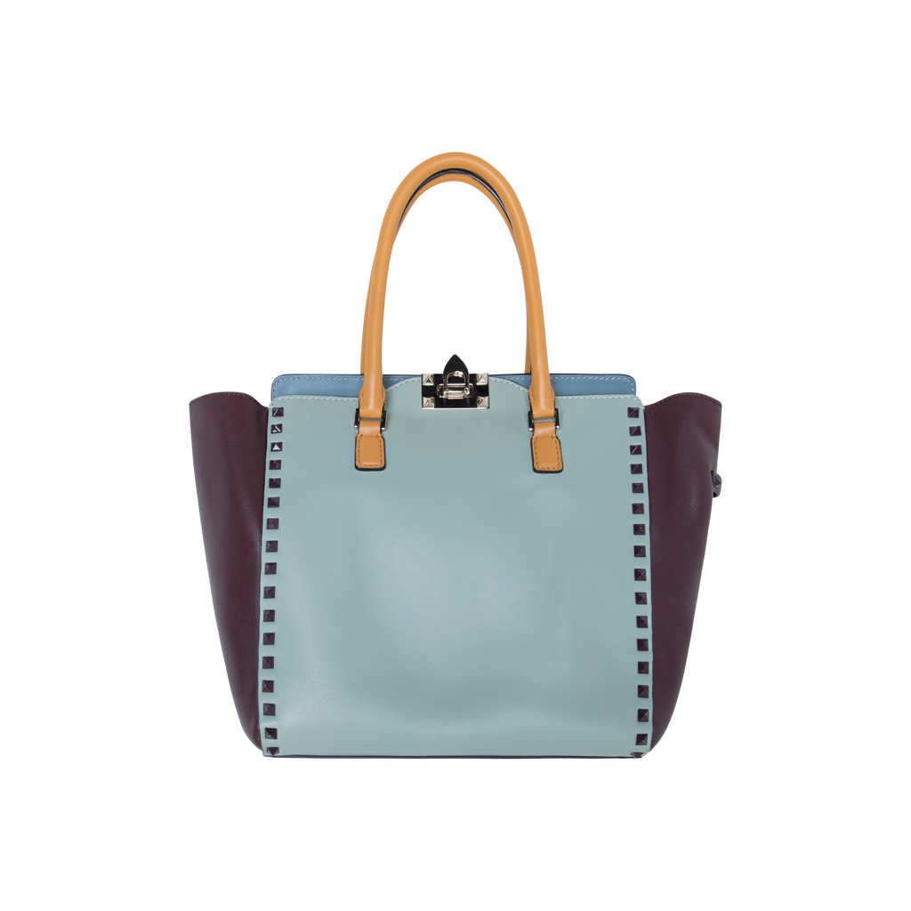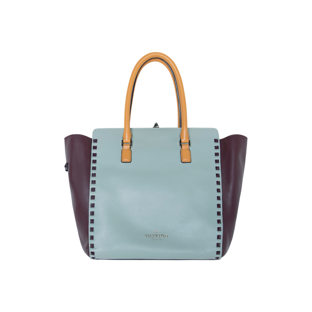 Valentino Garavani Rockstud Multicolor Tote Bag features multiple colors throughout design and studs along its edges.