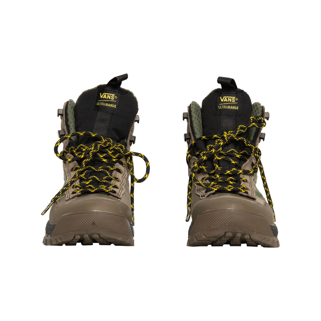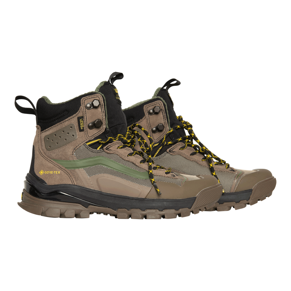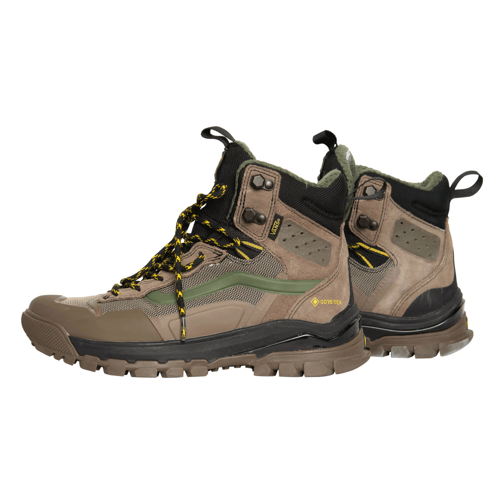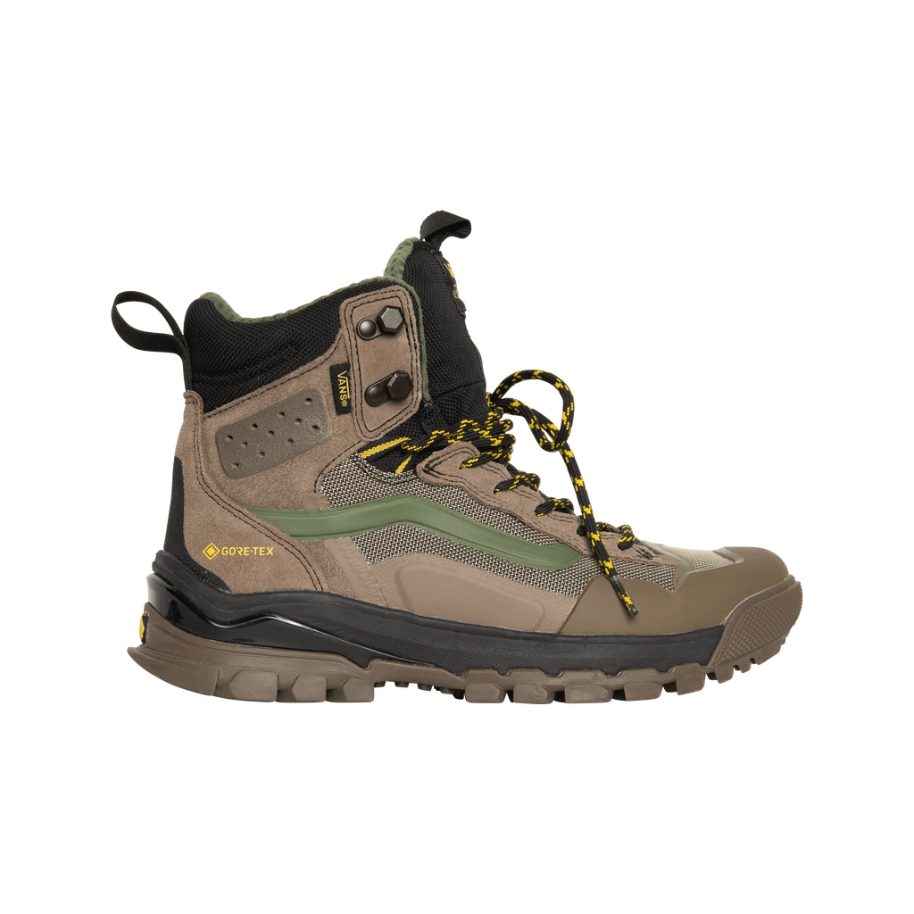 Vans Hiking Boots features lace up closure, rubber sole, suede upper.