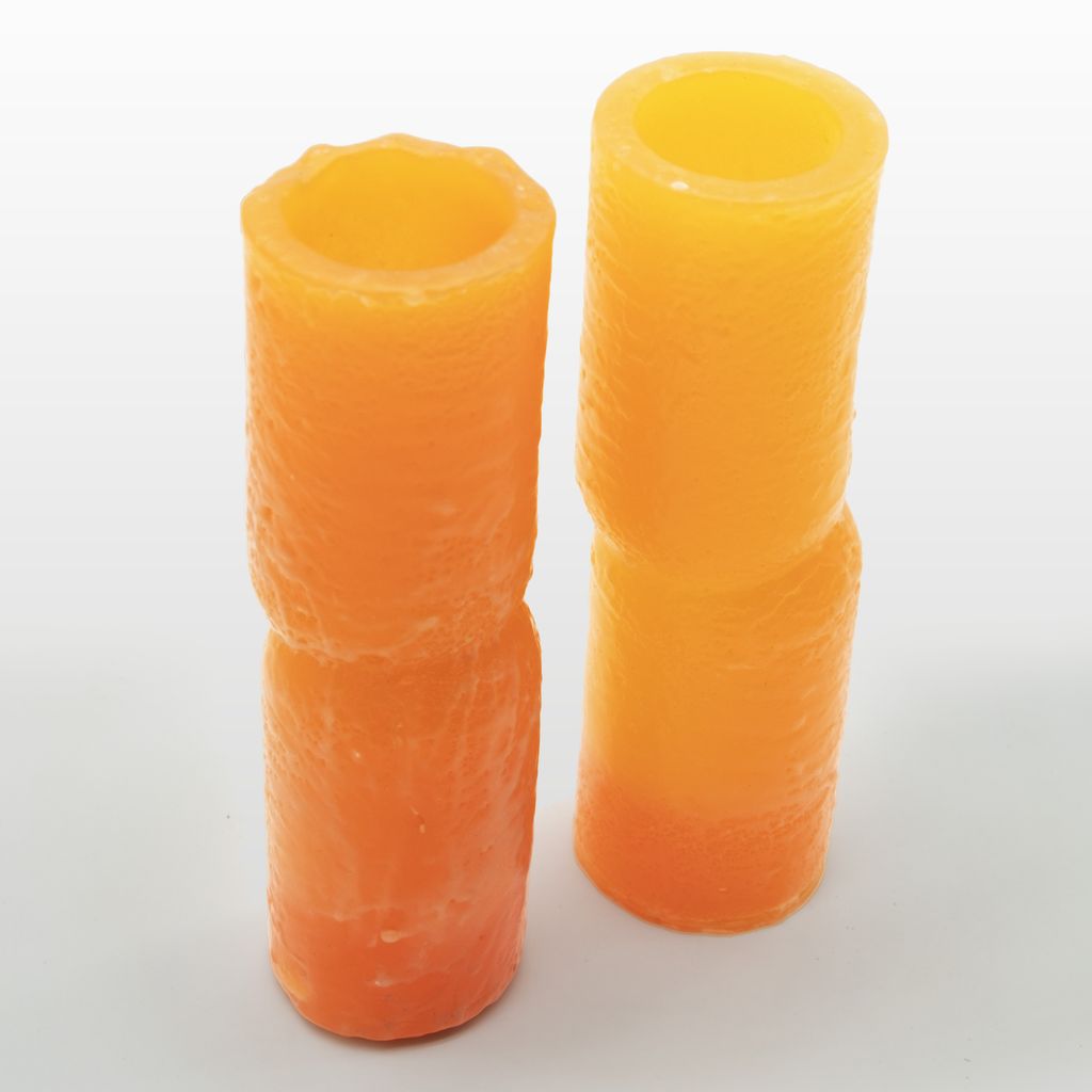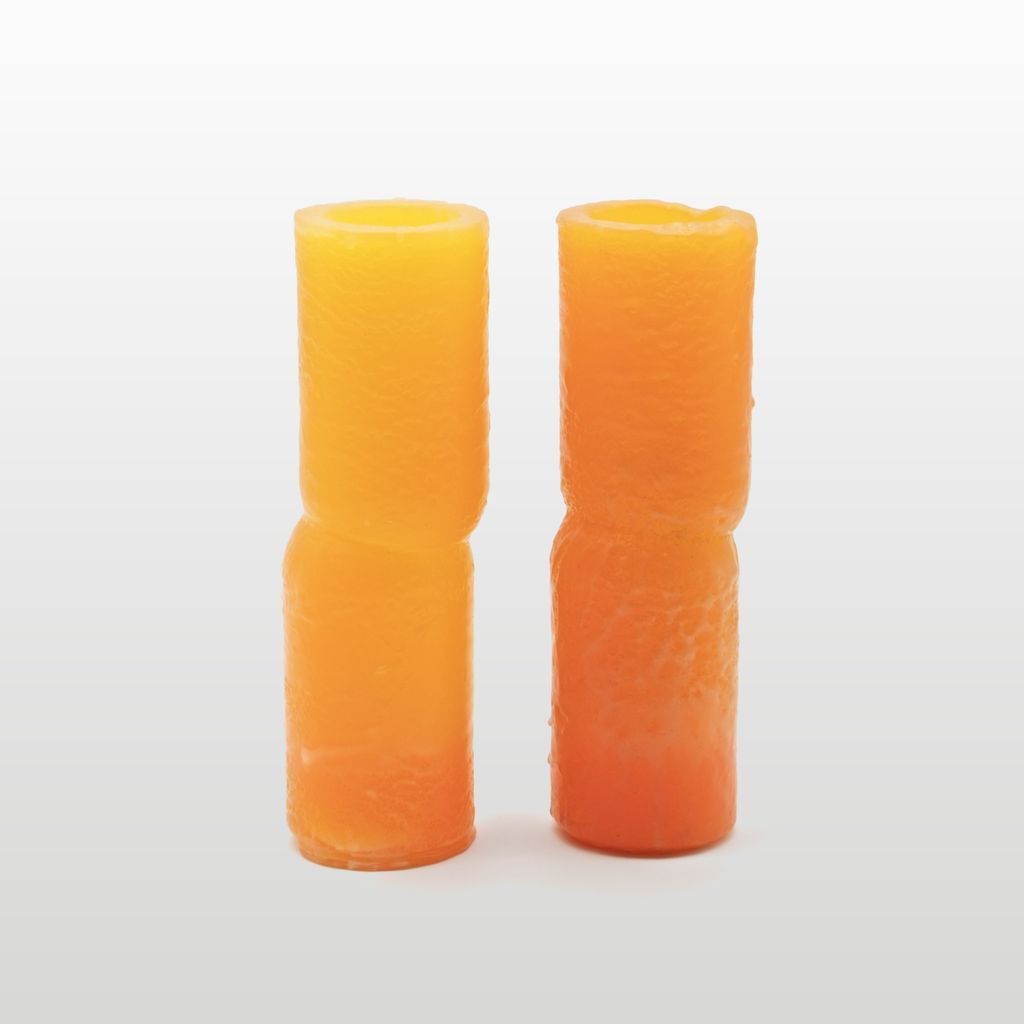 This vase was casted in translucent paraffin wax, its surface was then textured using heat giving it a melted look.