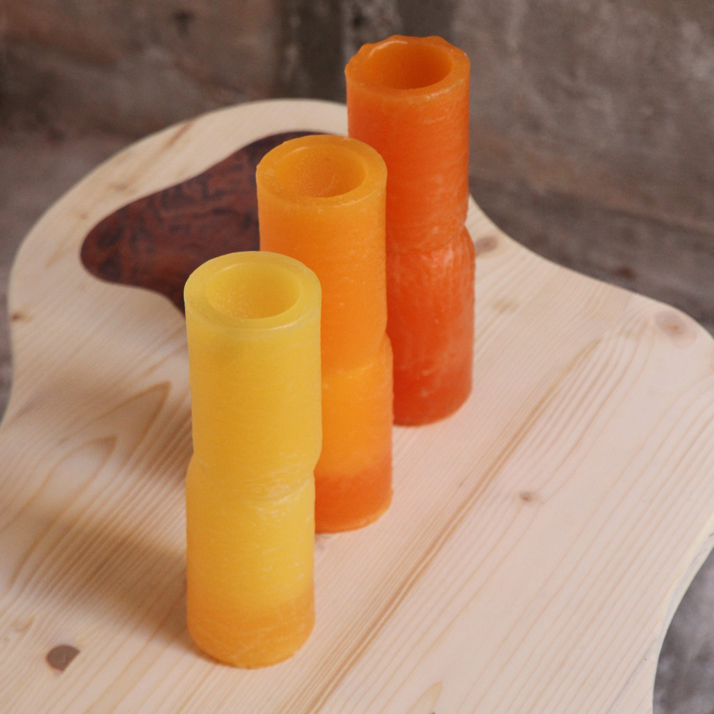 This vase was casted in translucent paraffin wax, its surface was then textured using heat giving it a melted look.