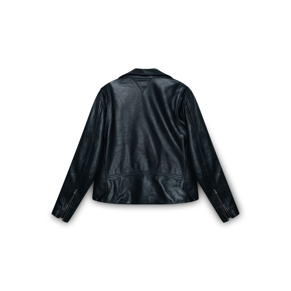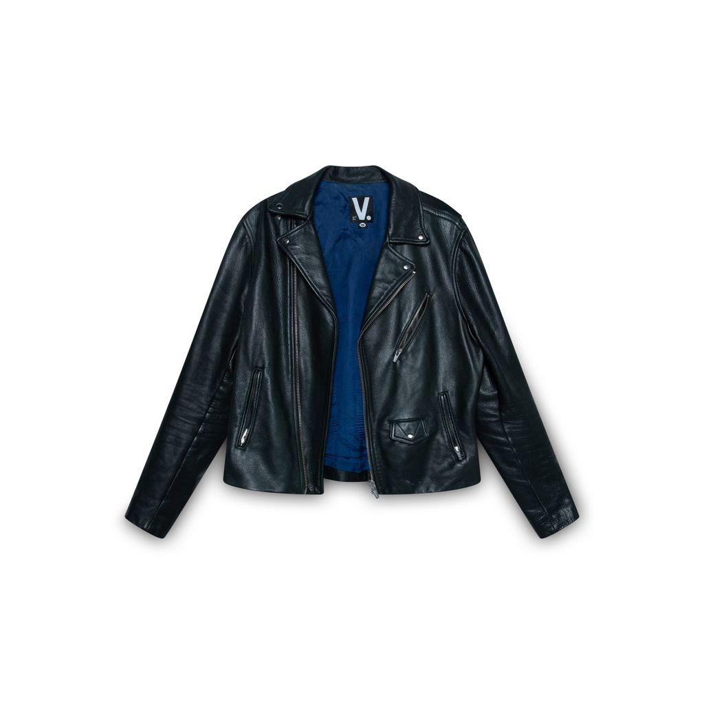 VEDA motorcycle leather jacket feature sheep leather throughout, four front pockets, frontal zipper closure and two zippers at sleeves.