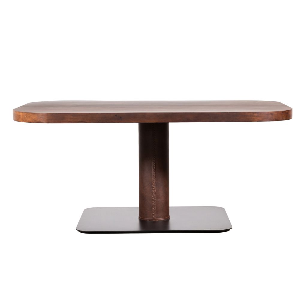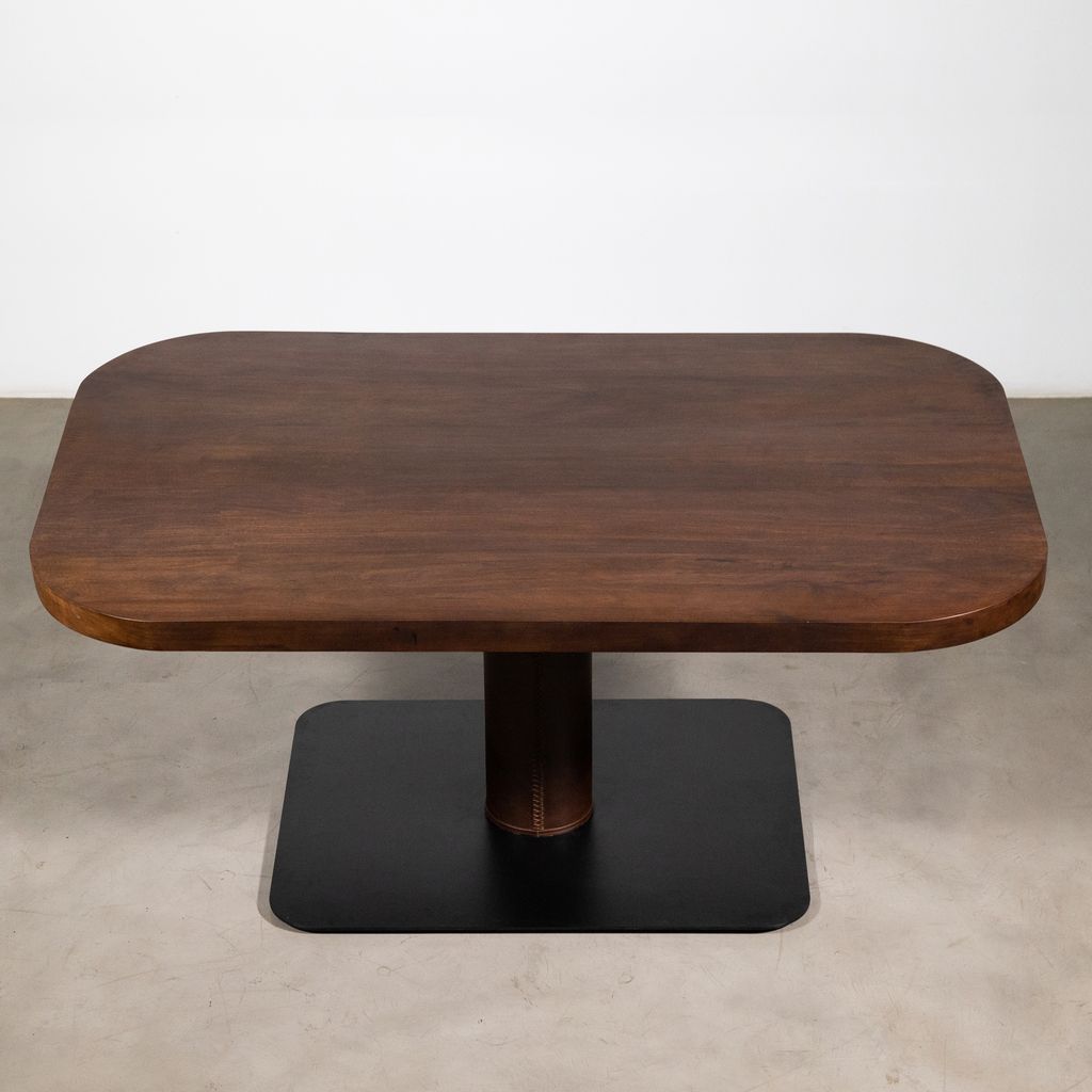 Modern Square Wood & Stitched Leather Pedestal Table from Costantini, Vincenzo.