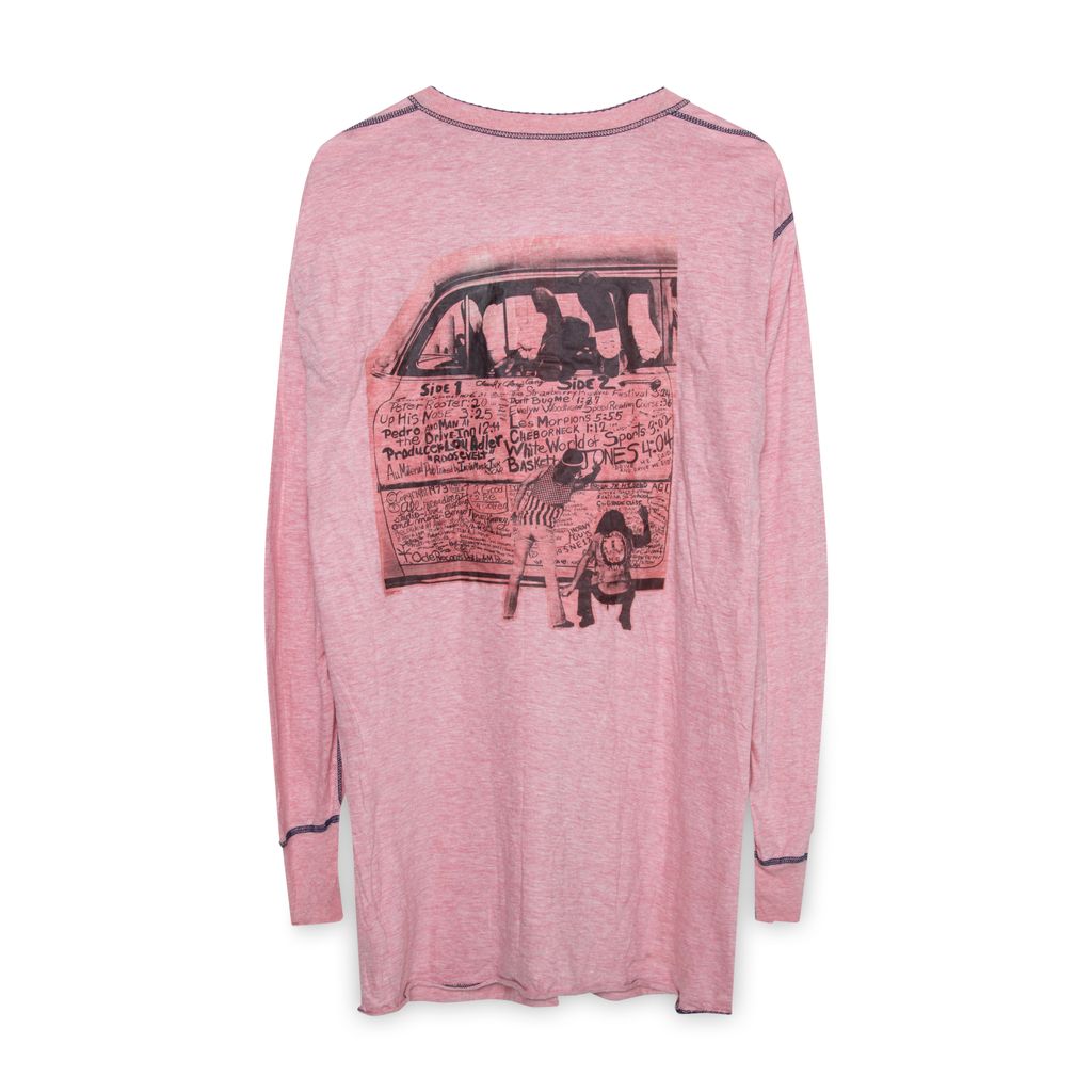 Vintage 1970s Cheech & Chong henley shirt features graphics front and back from the Los Cochinnos album. Shirt has three closure buttons at front, contrast stitching throughout, and overlocked on all hems.