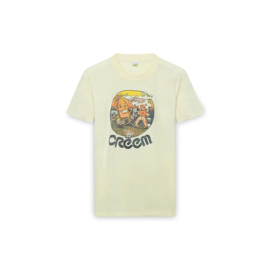 Vintage 1970s CREEM magazine t-shirt features graphic at from, natural distressed details throughout, crew neck, and single stitching on all hems.