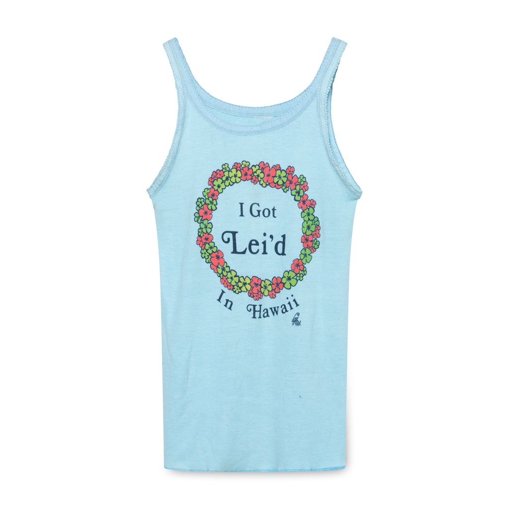 Vintage 1970s Hawaii tank features graphic at front, distressed details throughout, and stitching details on ribbing throughout.