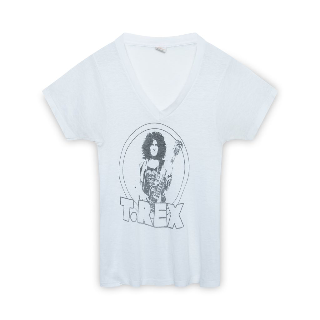 Vintage 1970s T.Rex V neck paper thin t-shirt features graphic at front, and single stitching on all hems.