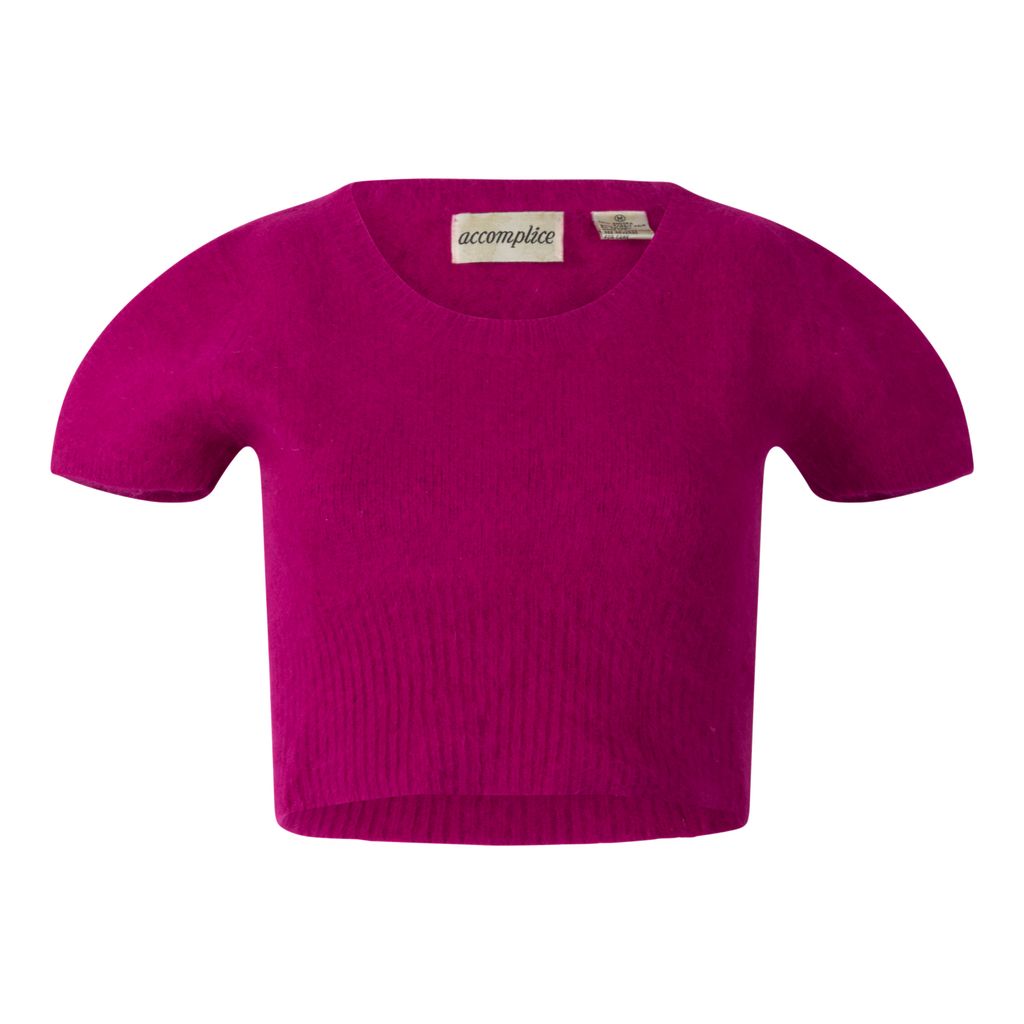 This vintage Fuschia sweater from Accomplice features a round neck collar, short sleeves, and has a cropped silhouette. Gently worn, in amazing vintage condition.