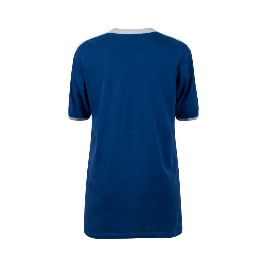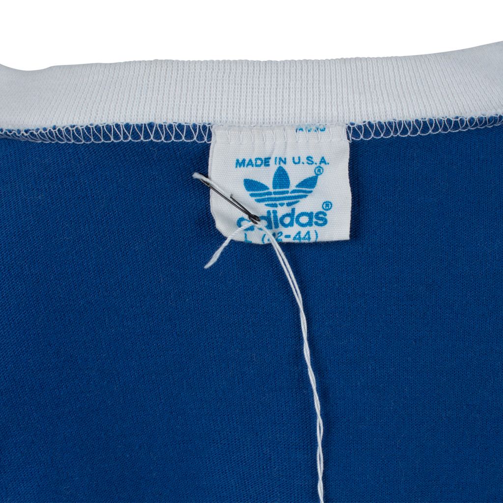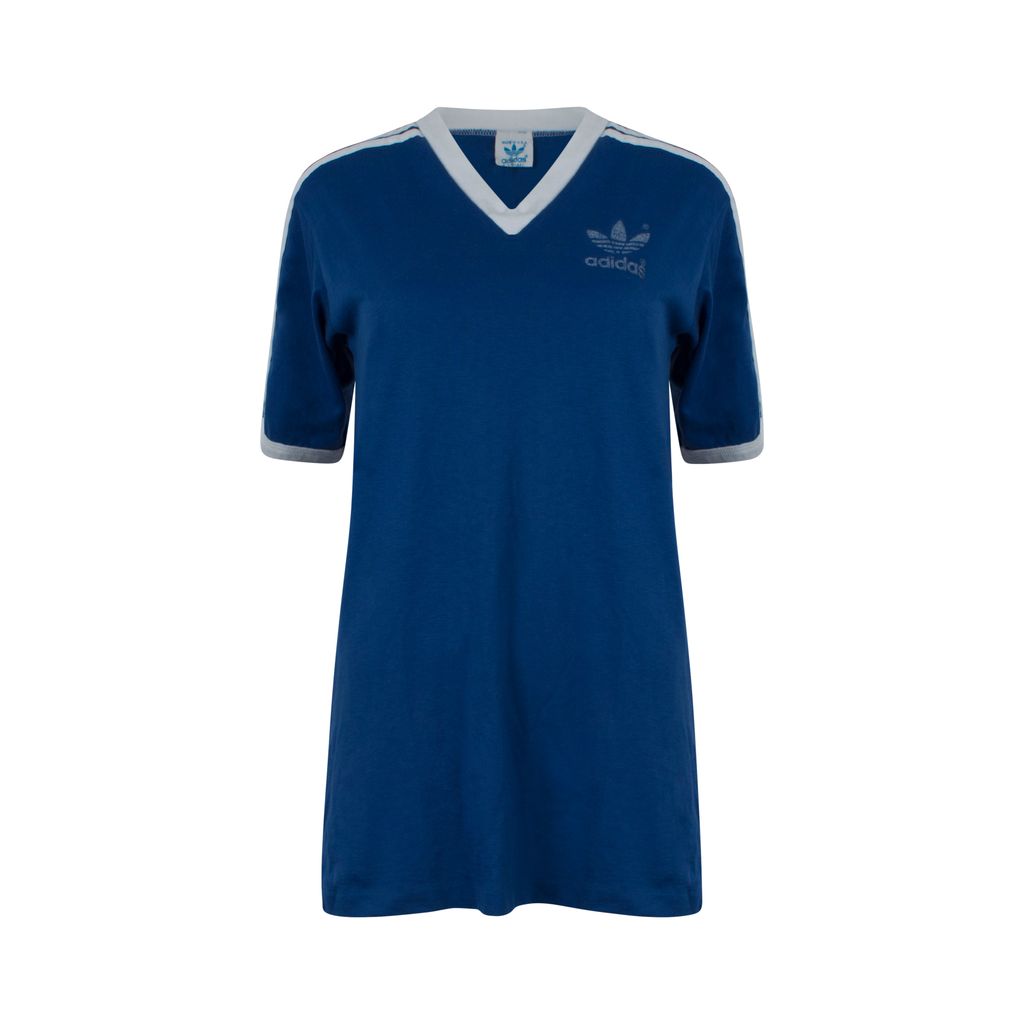 This classic vintage Adidas tee features the iconic three stripe detail on the sleeves and has banded cuffs. Faded Adidas logo on front. Gently worn.