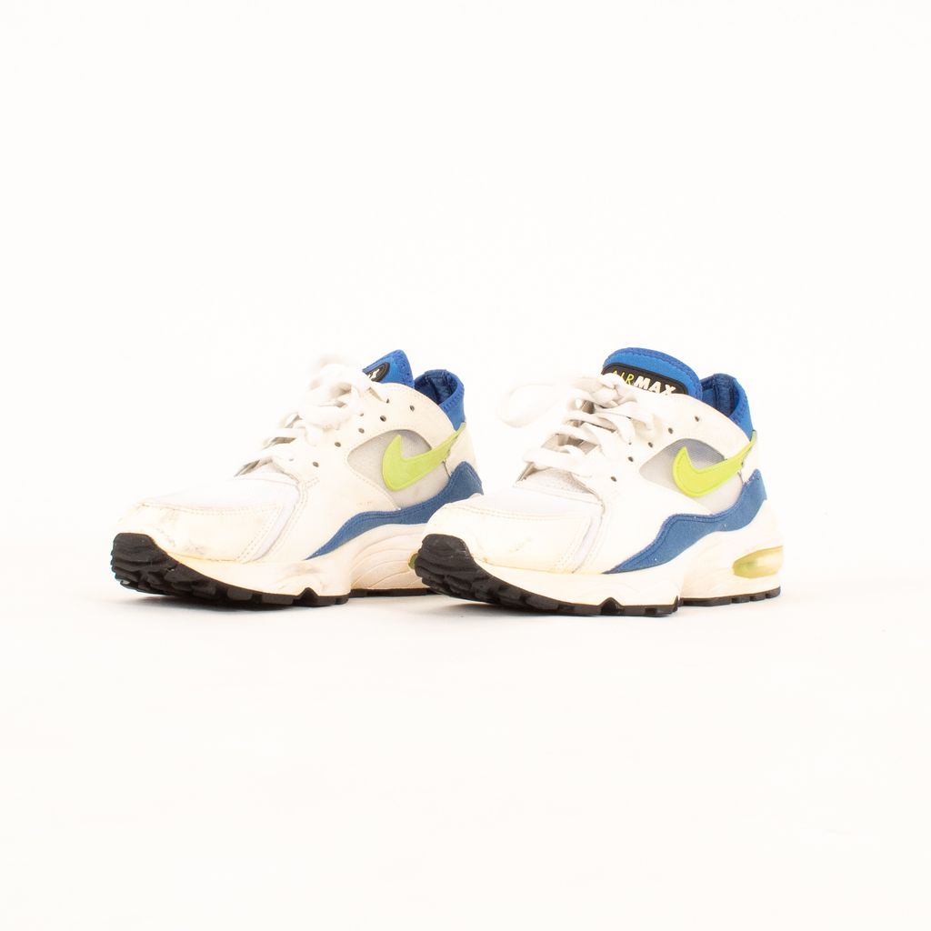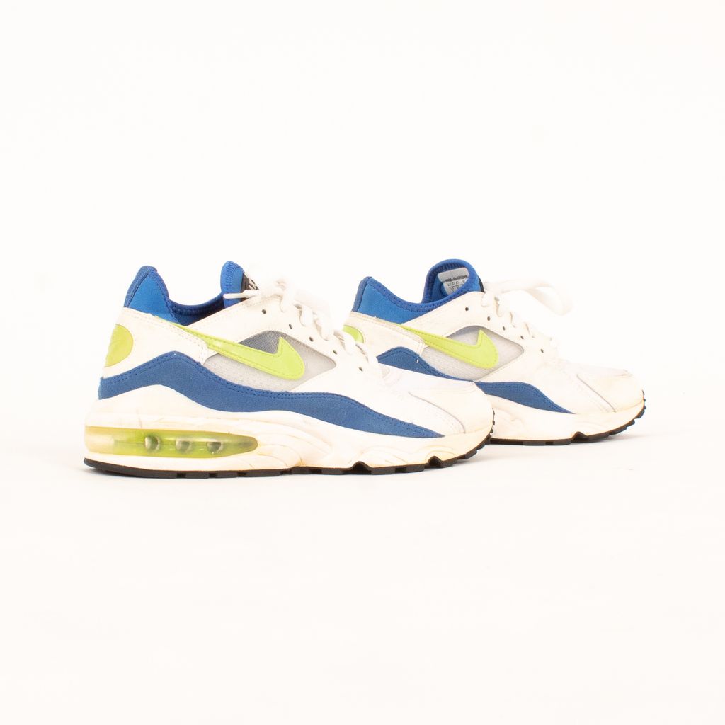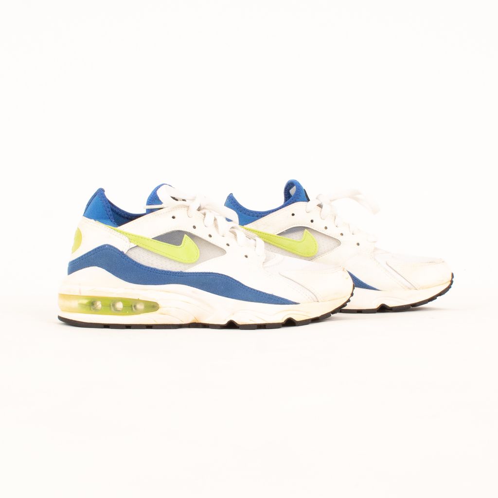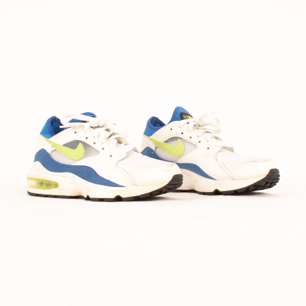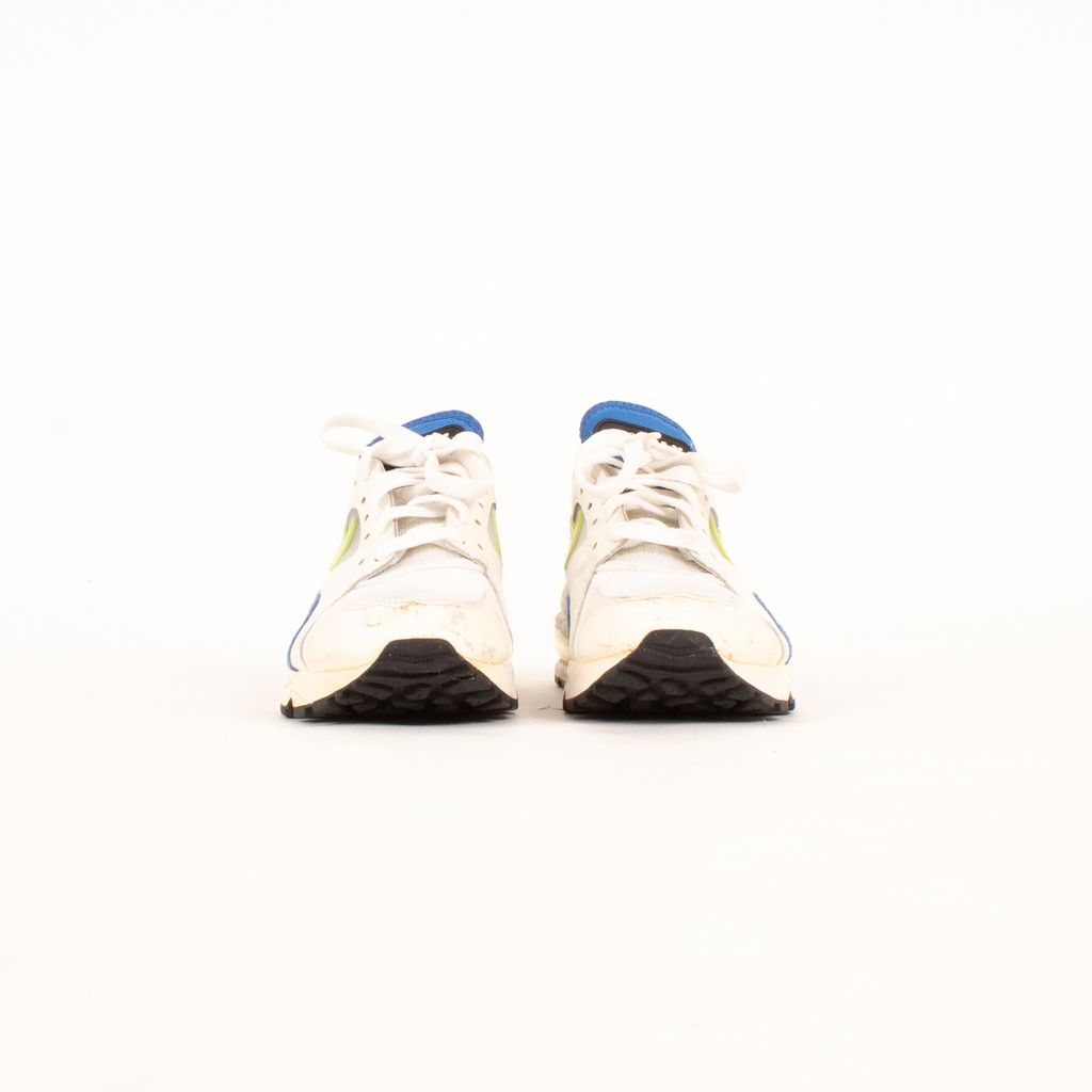 A retro-futuristic take on a classic silhouette from Nike, these sneaker combine the iconic Air Max style with neon colorways and space age materials. Features tricolor body, scuba knit fabrication at tongue and ankle, smoky plasticine cutout with neon Nike swoosh overlay on sides, neon green heel insert, and Air Max branding on soles and tongues.