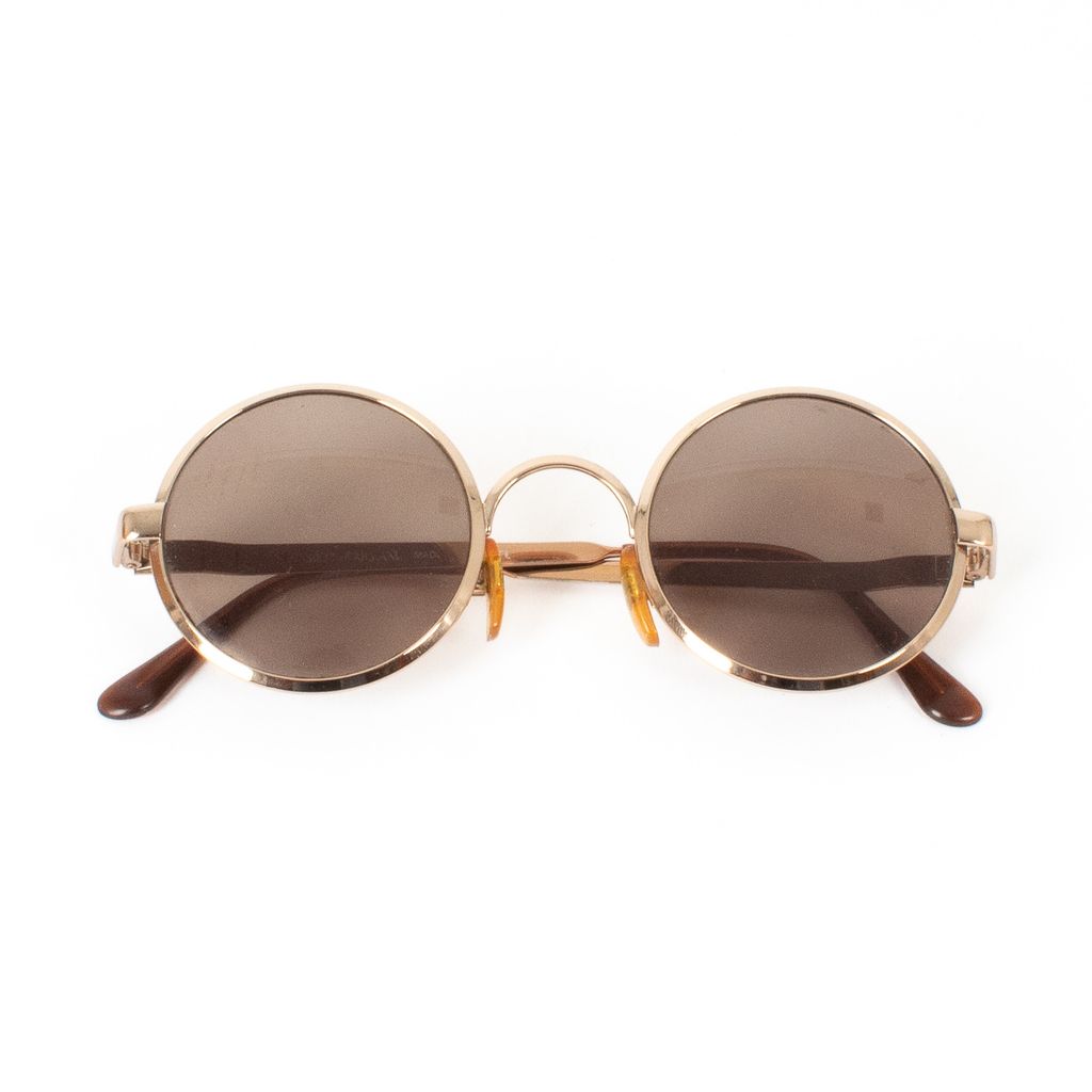 They some classics never go out of style, and these vintage Armani shades are a testament to that. Features soft gold frame, nose pads, smoke colored circle lenses, and soft body case.