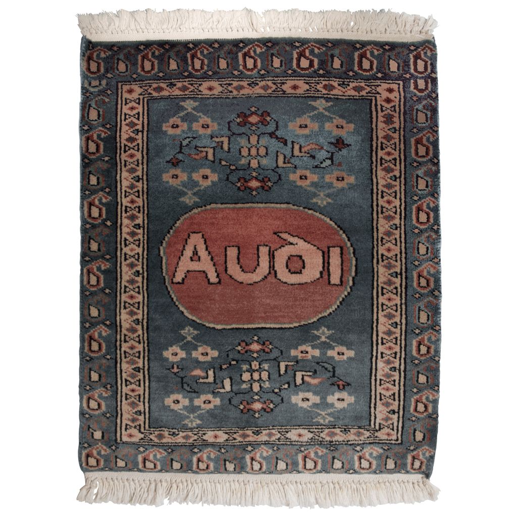 Vintage Audi Afghan Rug features the Audi logo in red.