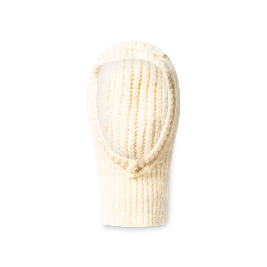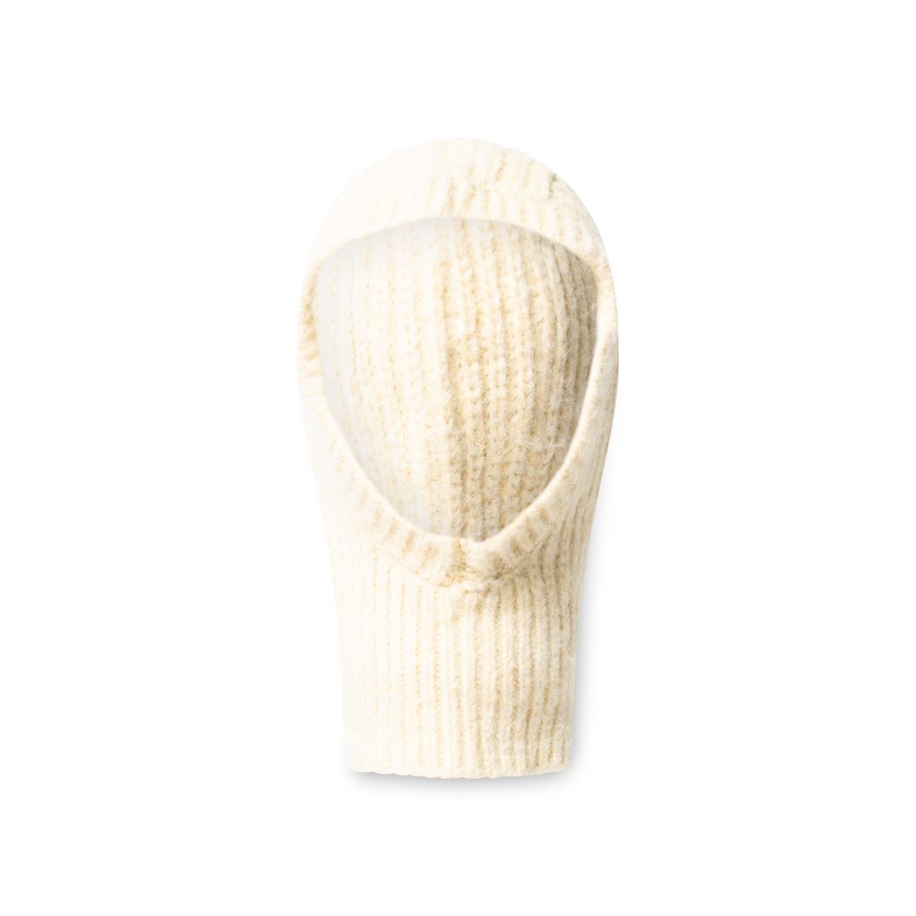 Vintage knitted balaclava beanie features fisherman knitted pattern throughout.