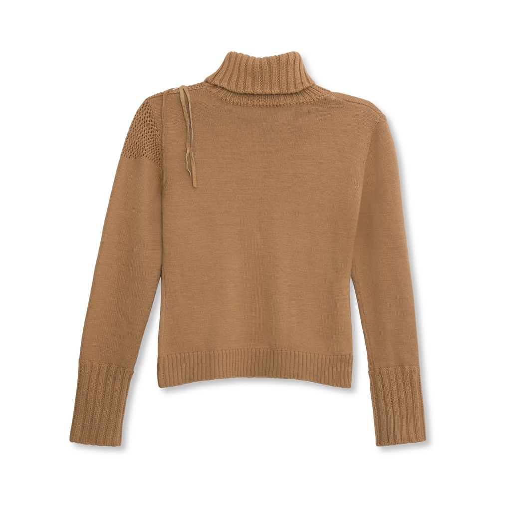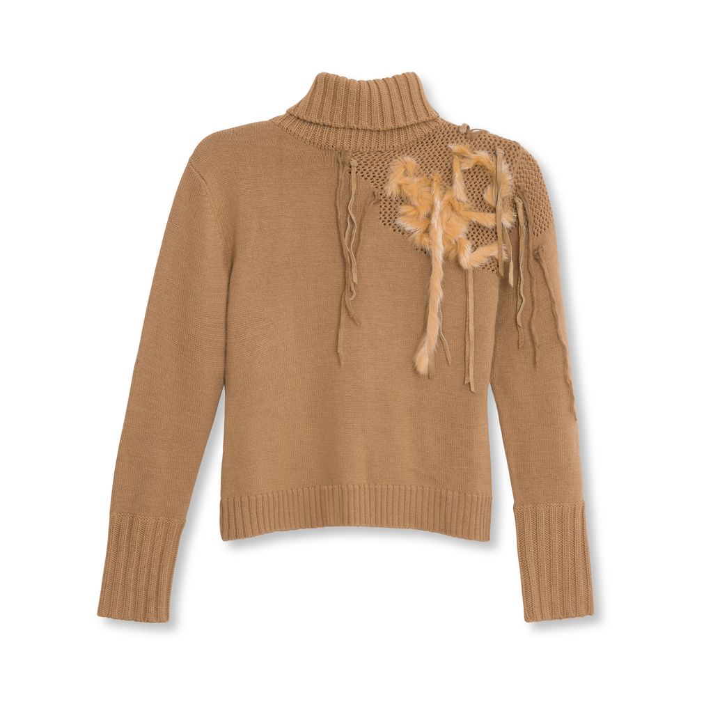Vintage Fur & Wool Turtleneck Sweater features fur and suede tassels, ribbing at cuffs and hem, ribbed fold over turtleneck.