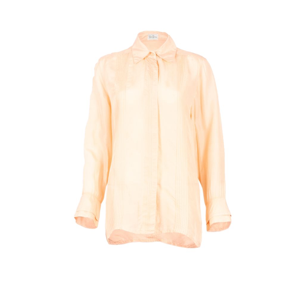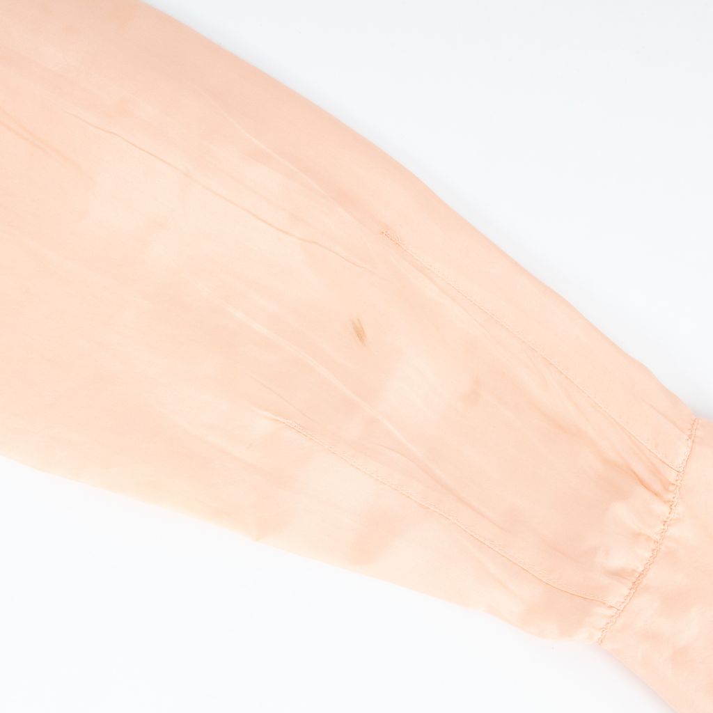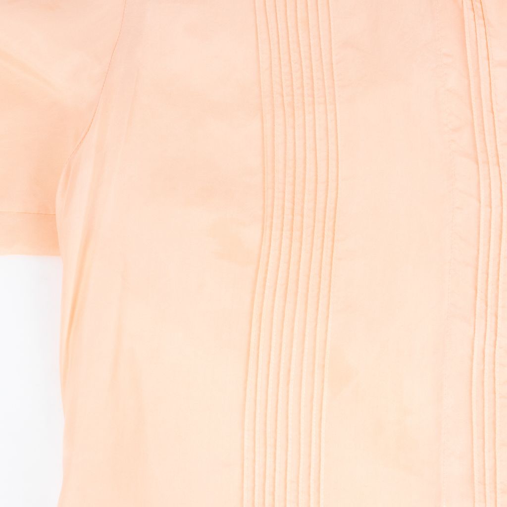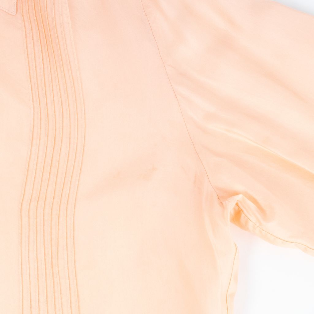 Deceptively simple, this vintage blouse from Betty Barclay shows off an impressive set of design details. Features pintuck detailing on front and back of shirt, layered and flared wrist cuffs, medium sized lapel, tonal button closure front, and minor signs of wear. Signs of wear include slight staining throughout.