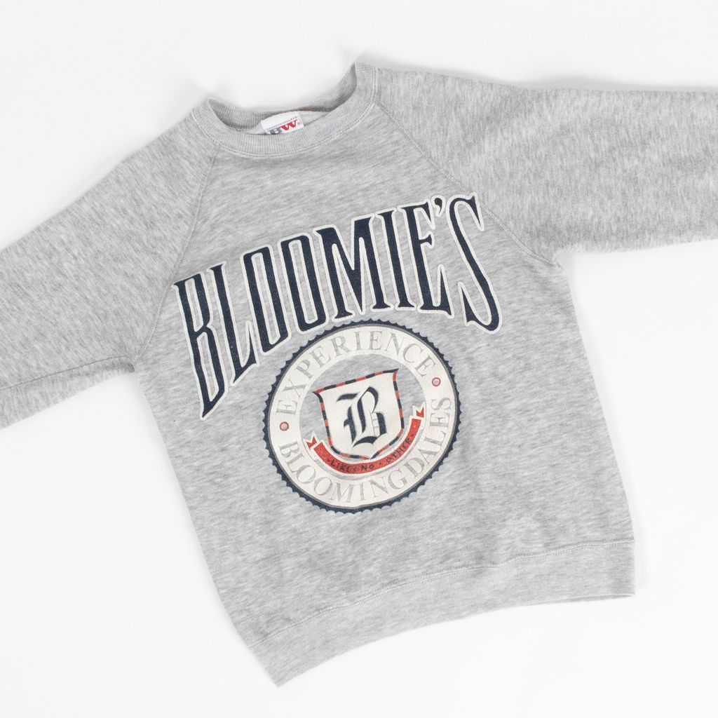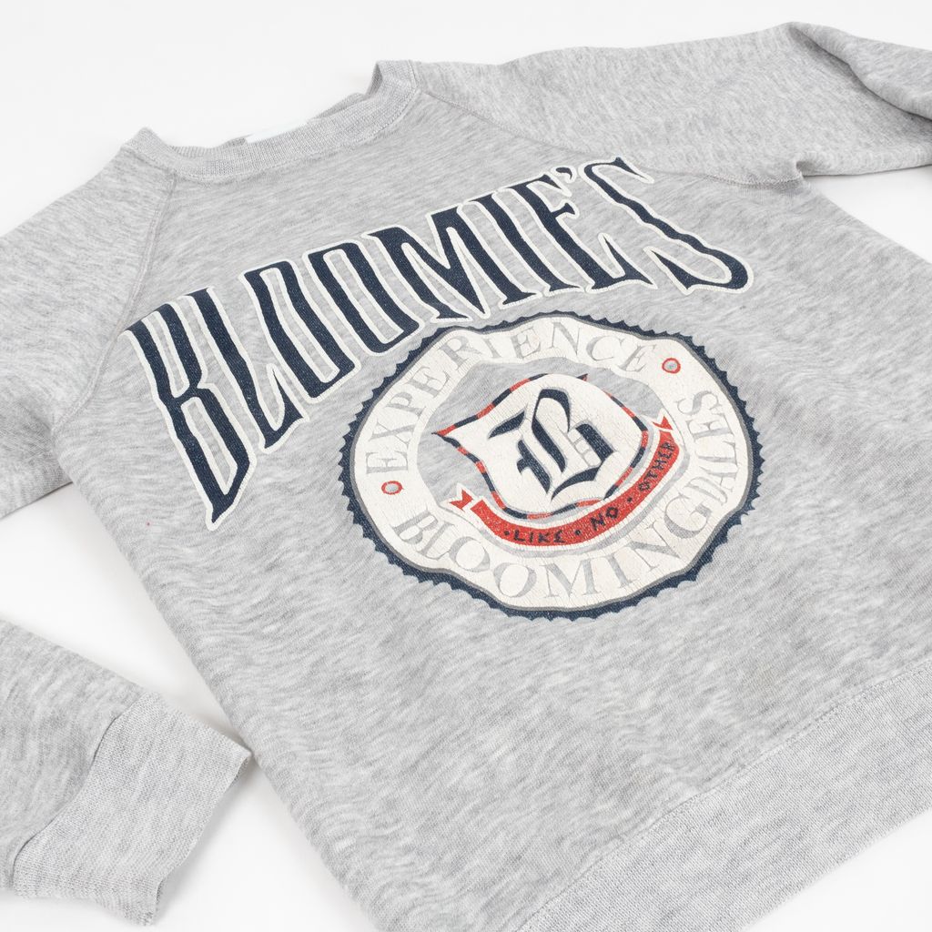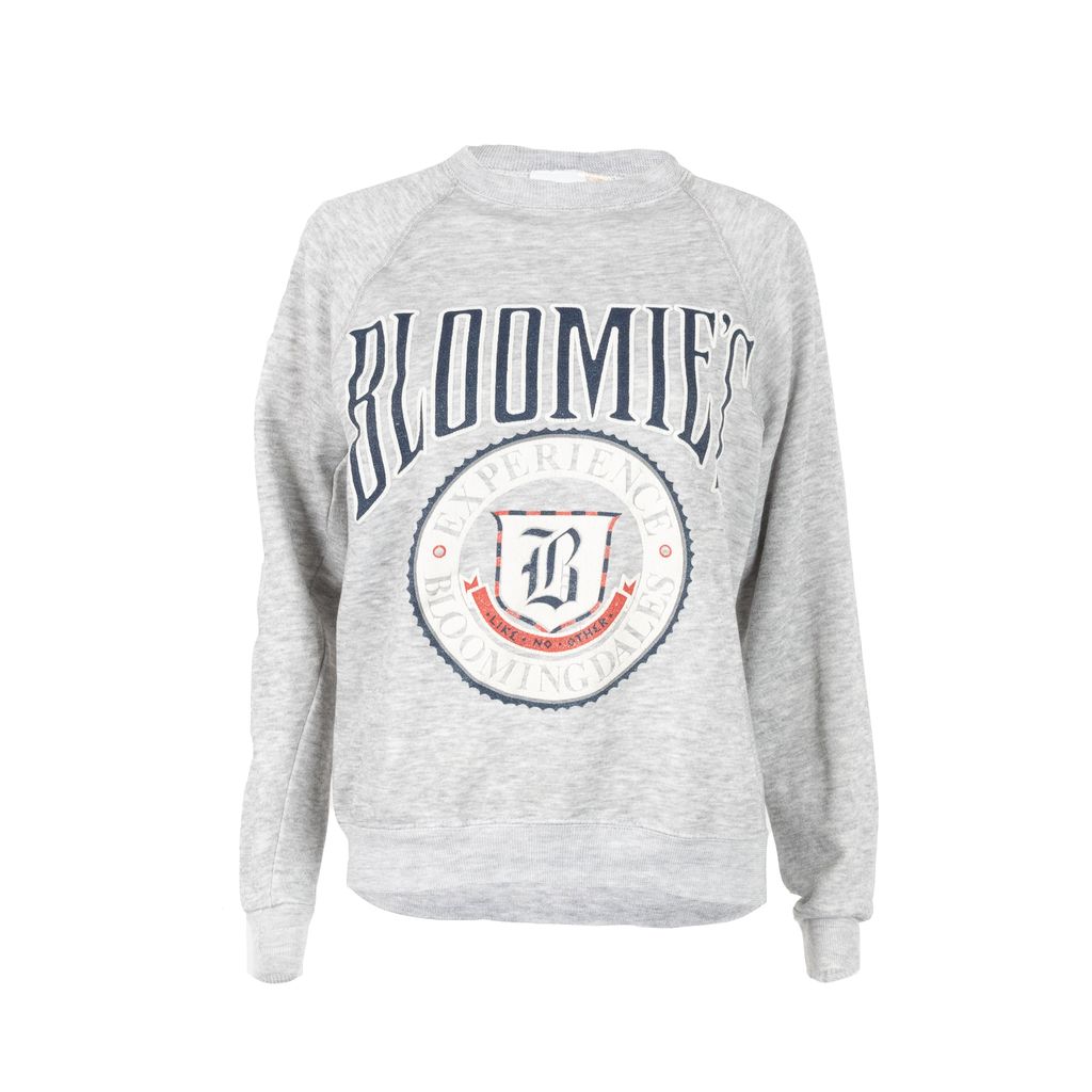 This vintage Bloomingdales pullover showcases its pride for a world class shopping experience in a collegiate style way. Features paper thin body fabrication, relaxed fit, rib knit bands at neck, waist, and wrists, and front printed Bloomingdales graphic.