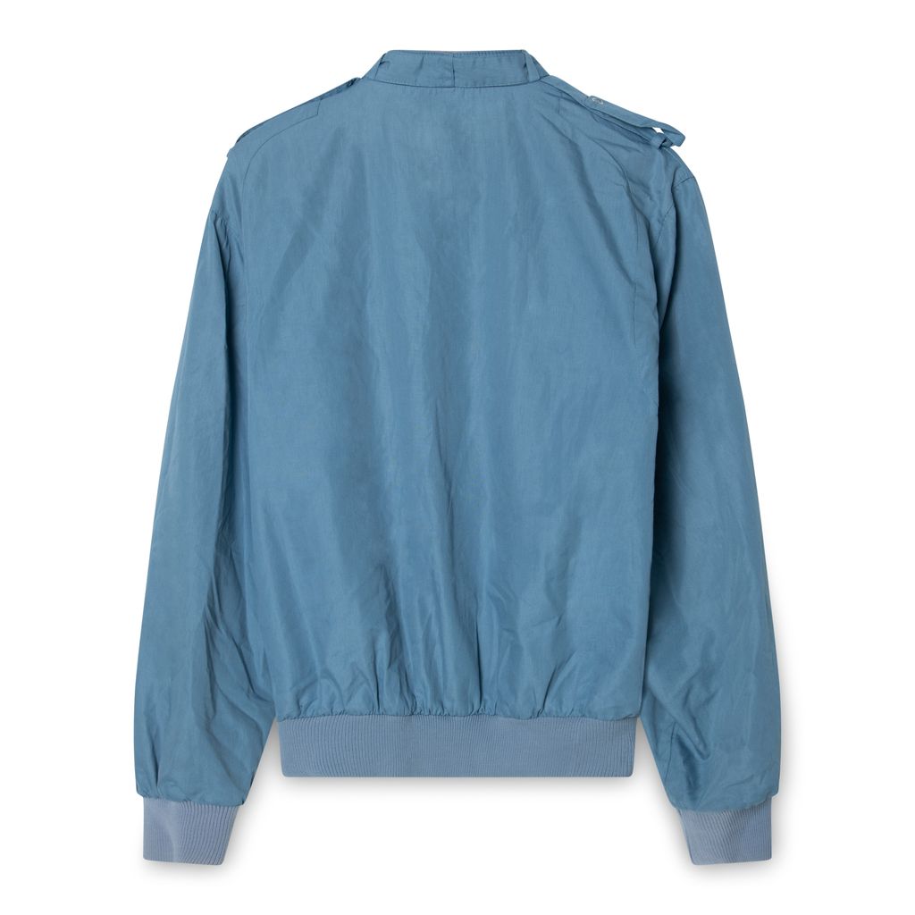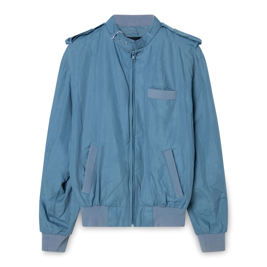 Vintage Bomber Jacket features front pockets, adjustable throat latch , shoulder epaulettes, and front zip closure.