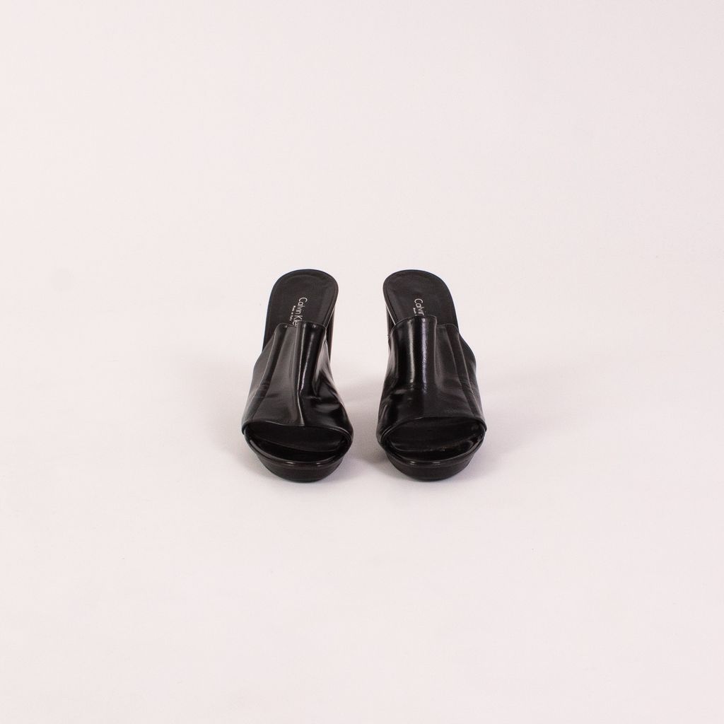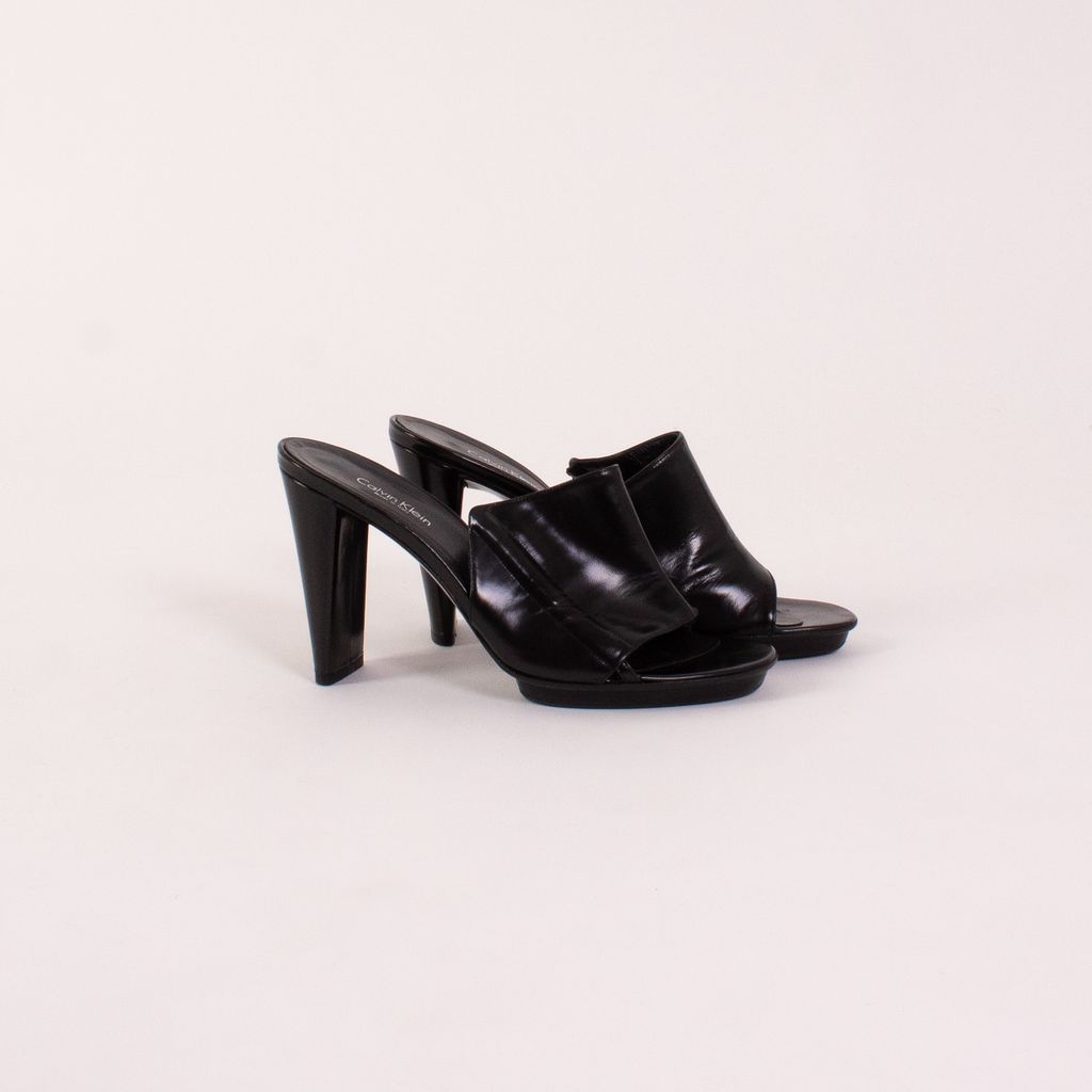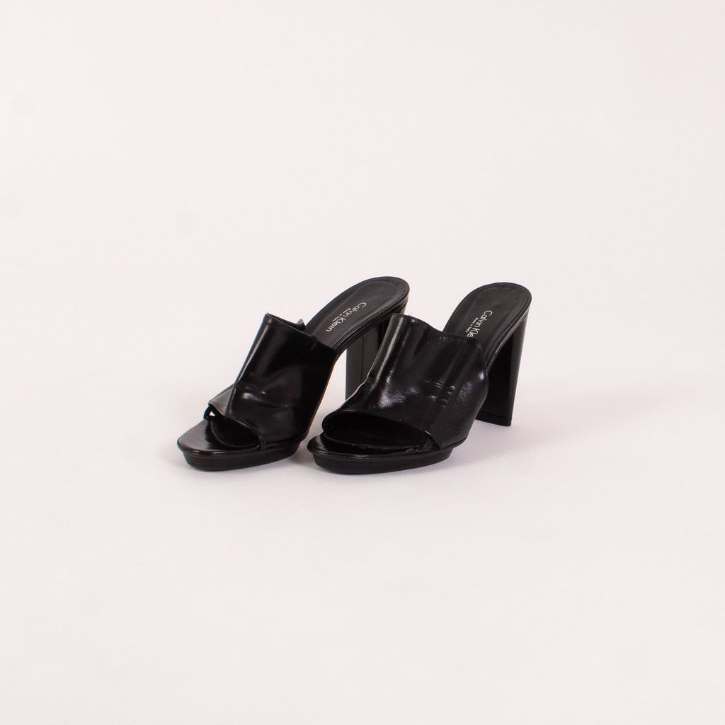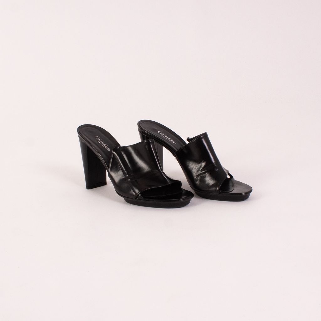These mules an an amazing go to from the king of minimalist American design, Calvin Klein. Features leather construction, four inch heel height, and side cut out.