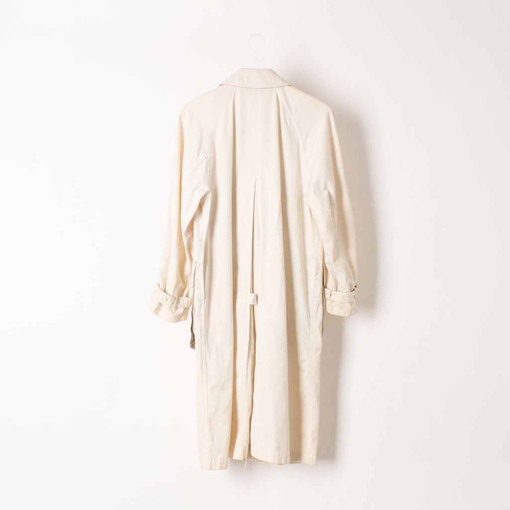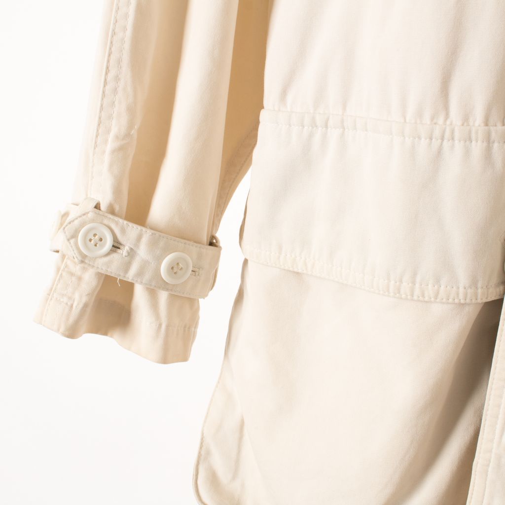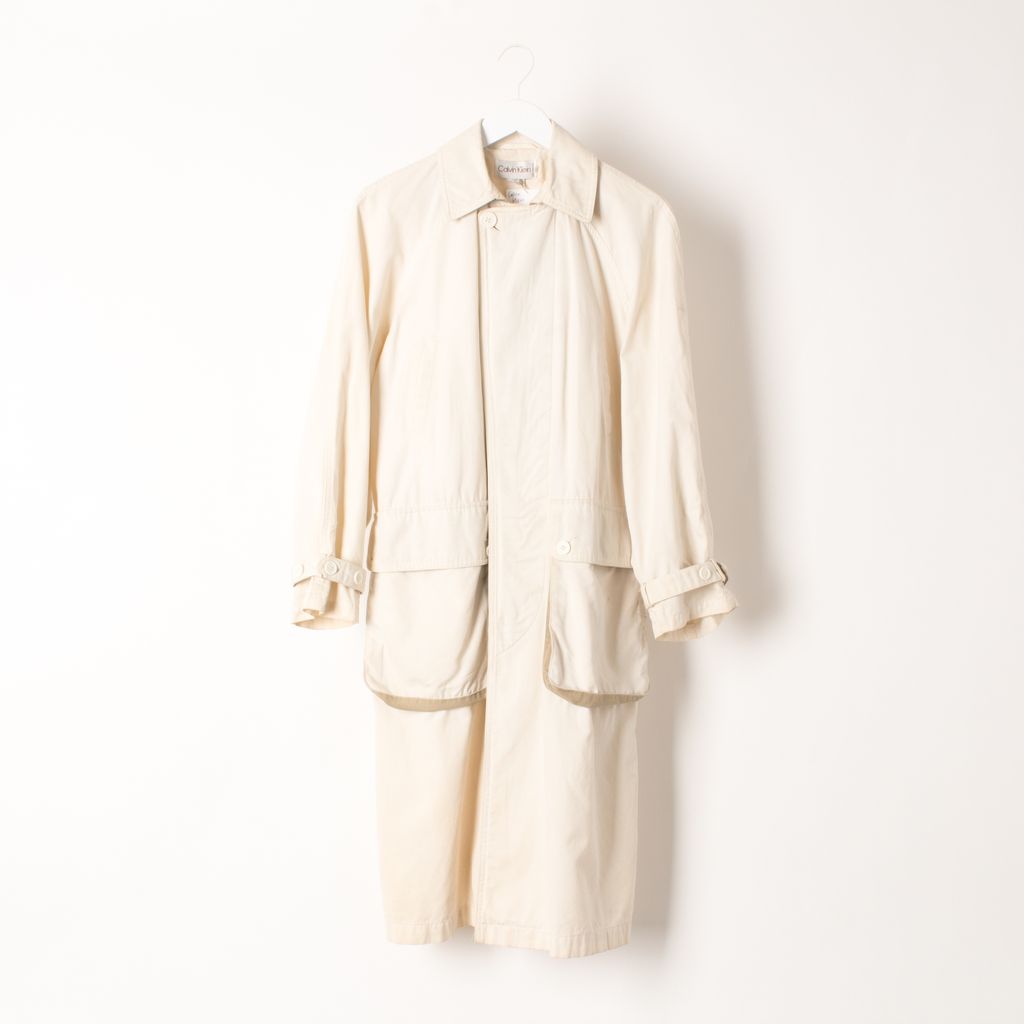 Gently used vintage safari coat from Calvin Klein. Features a collared neckline, roll up tab / button adjustable sleeves, two front lower flap pleated pockets and a full front zip closure. Minor flaws akin to a vintage piece.
