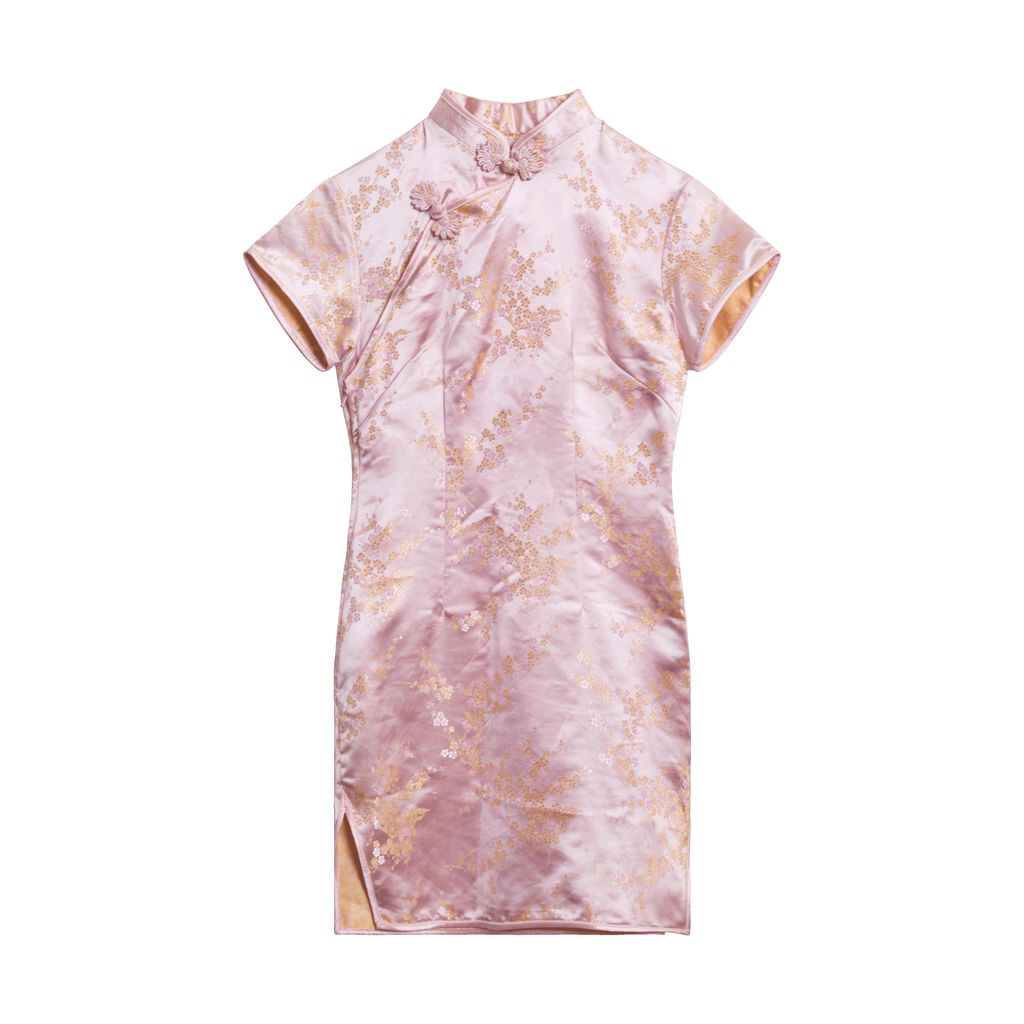 Floral graphics printed in gold along the body