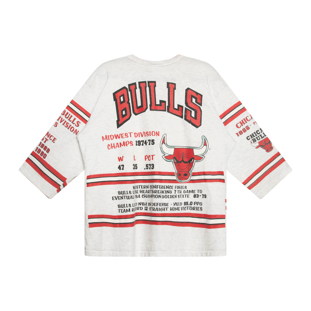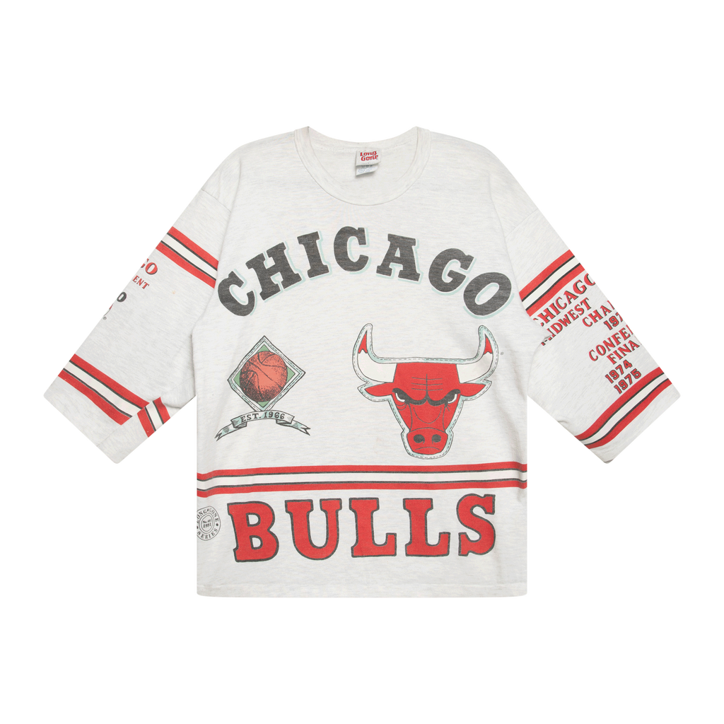 Vintage Chicago Bulls Shirt features quarter sleeve, ribbed collar, and graphic design through out.