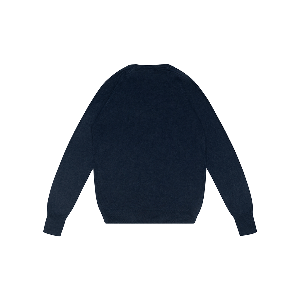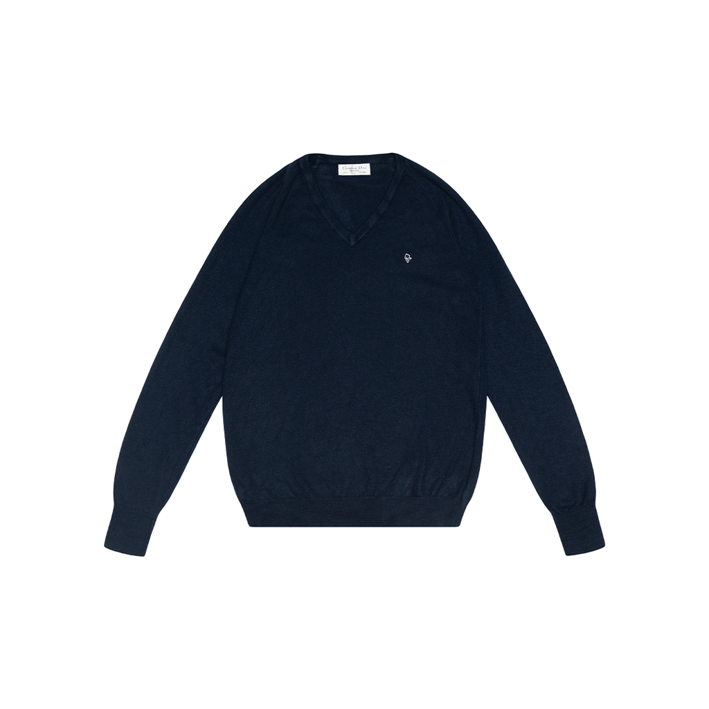 Vintage Christian Dior Navy V-Neck features embroidered Dior logo ribbed cuffs, and ribbed hem.