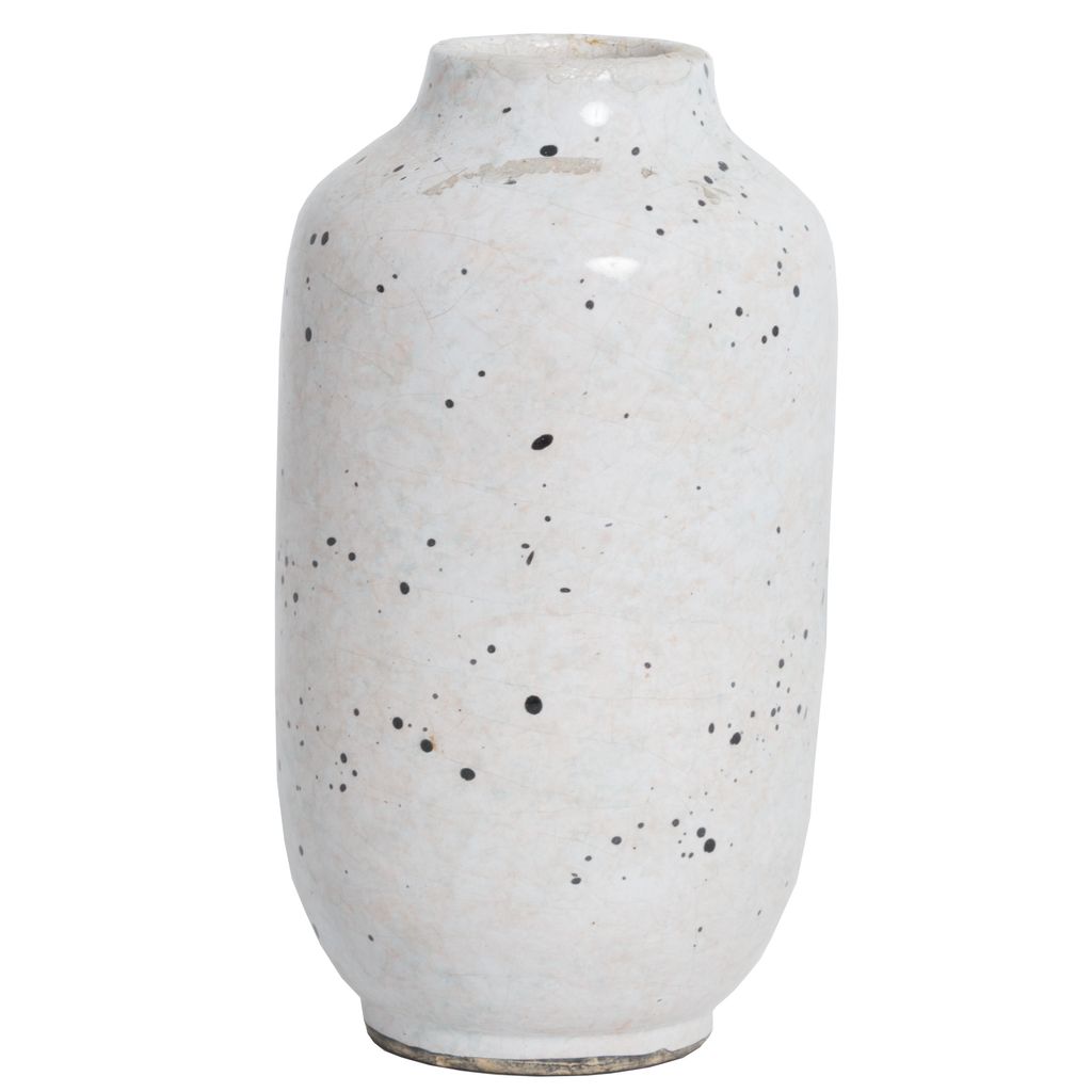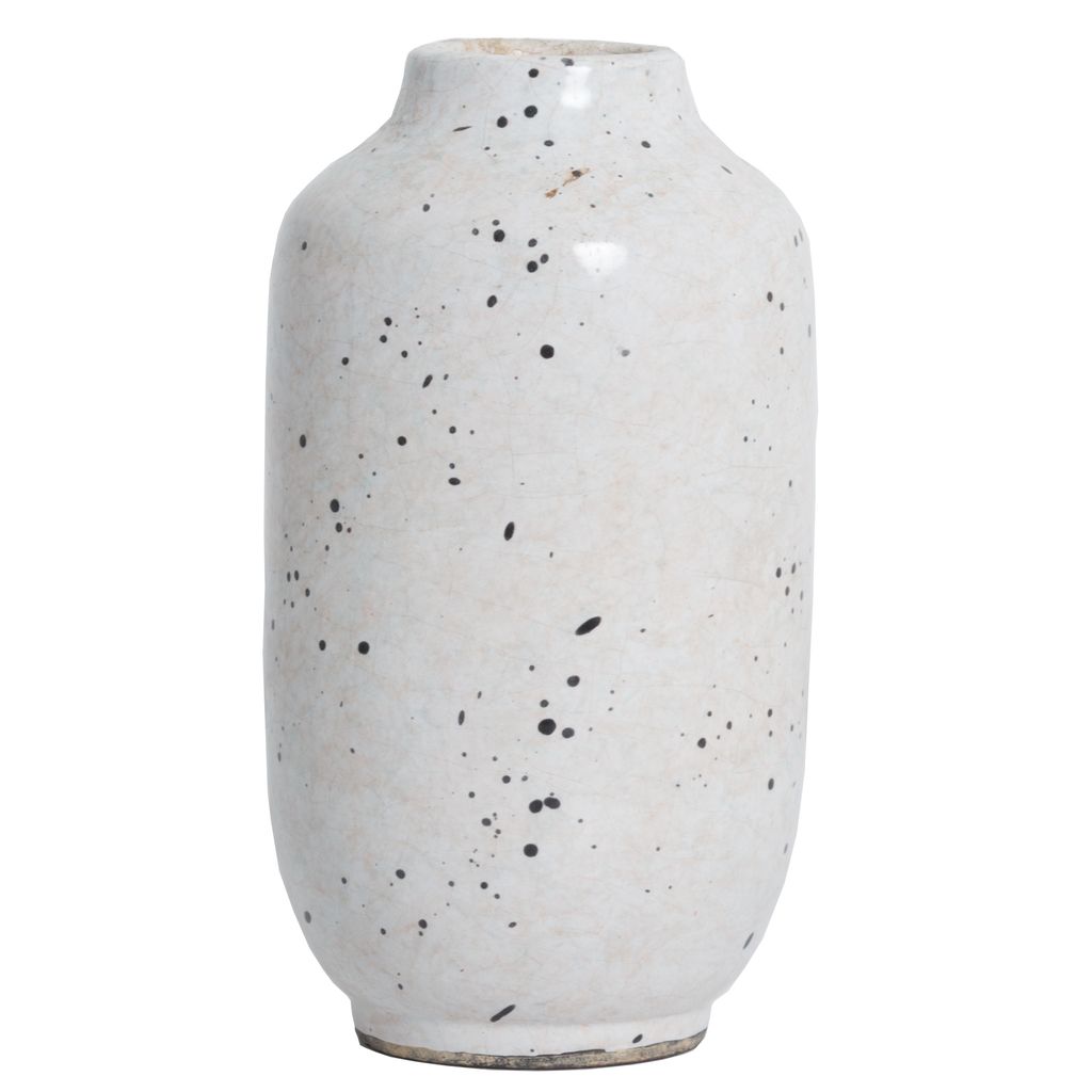 This vintage speckled vase the perfect home for seasonal flowers and moody pussy willows. Its neutral color and unique speckled pattern is ideal for any home or office.