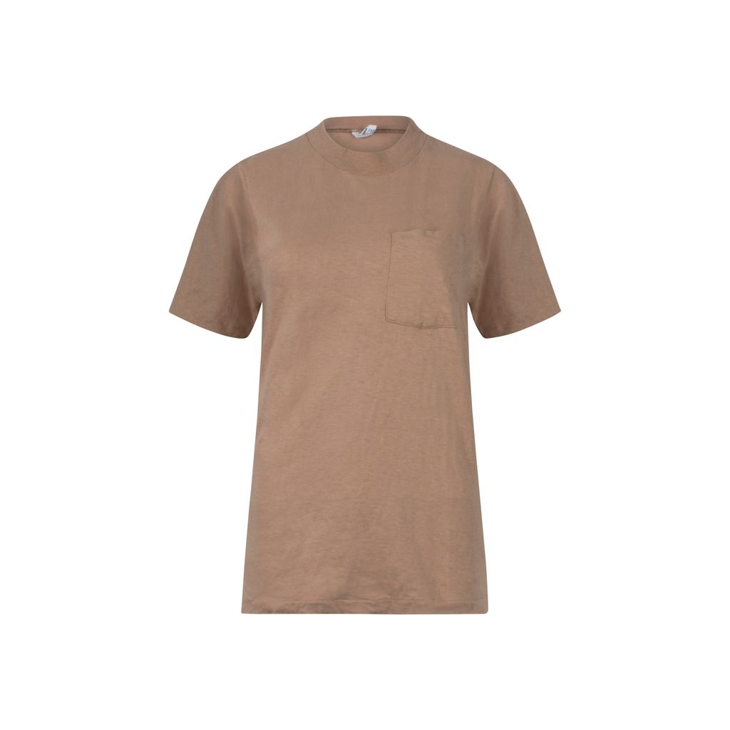 This 100% cotton vintage tee is the perfect staple for your closet. This taupe top has a high crew neckline, short sleeves, and functional front pocket. Gently used in good condition.