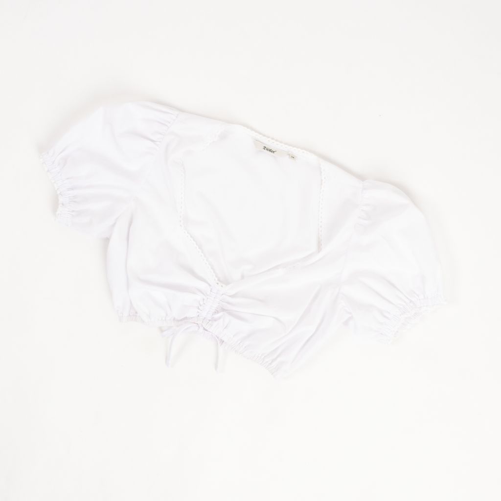 Go southern belle chic with this dainty cropped blouse from vintage brand Distler. The lacy sweetheart neckline with ruching detail will accentuate your curves and paired with some high waist daisy dukes you'll have the ultimate summer outfit.