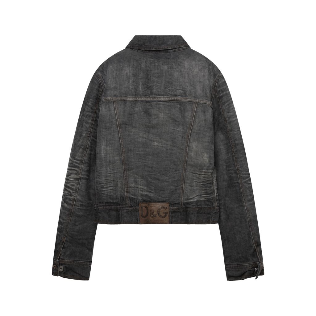 Vintage Dolce & Gabbana jean jacket features distressed denim and pink lining.