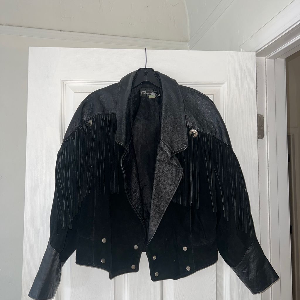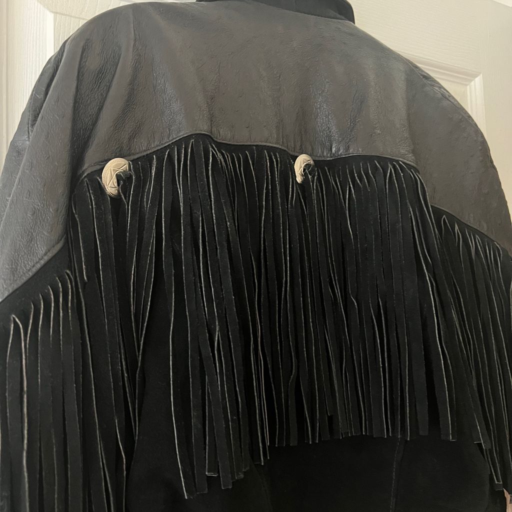 Vintage black fringe leather jacket. Perfect with jeans and white tee