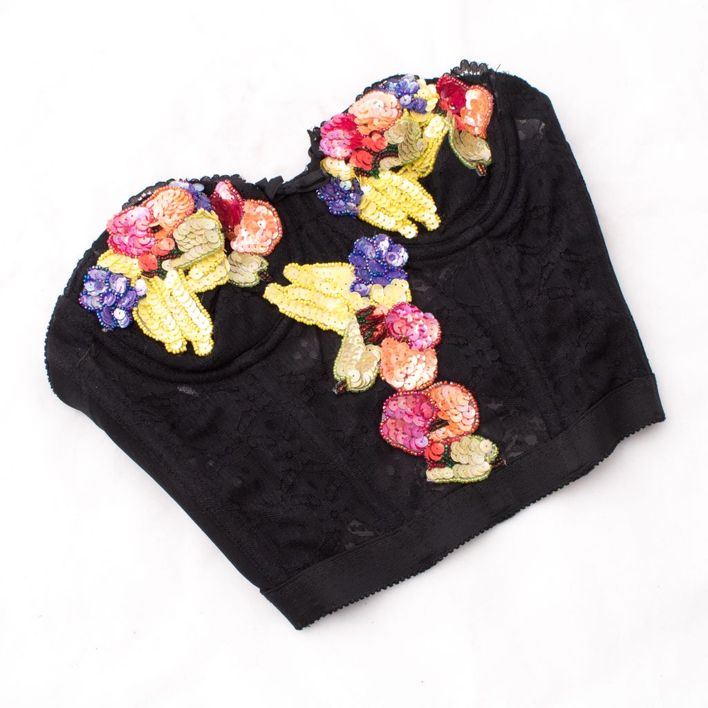 Vintage Gelmart Bustier featuring decorative colorful pattern across front - nylon, spandex and polyester.