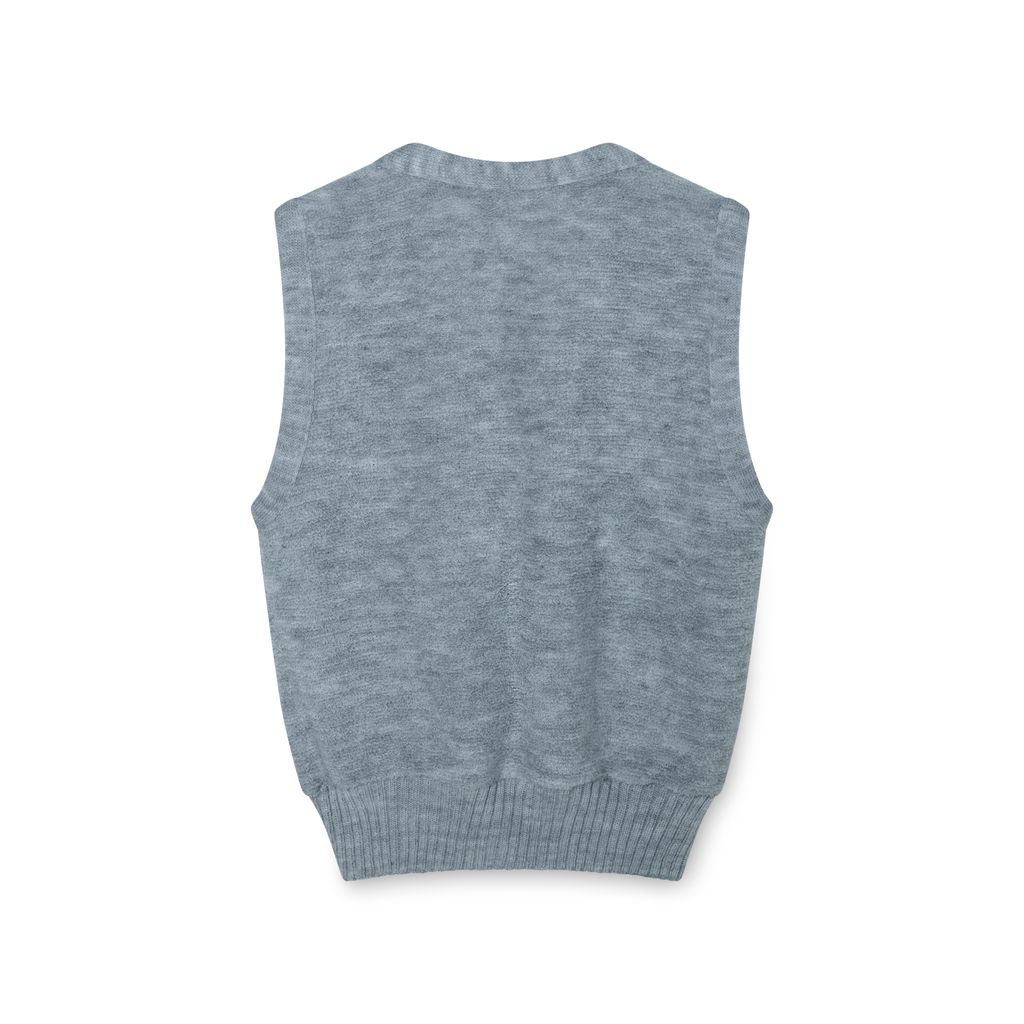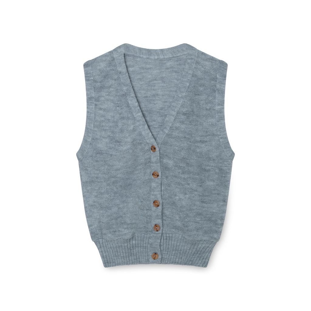 Vintage Grey Terrycloth Vest features brown wooden button closure and ribbed waist band.