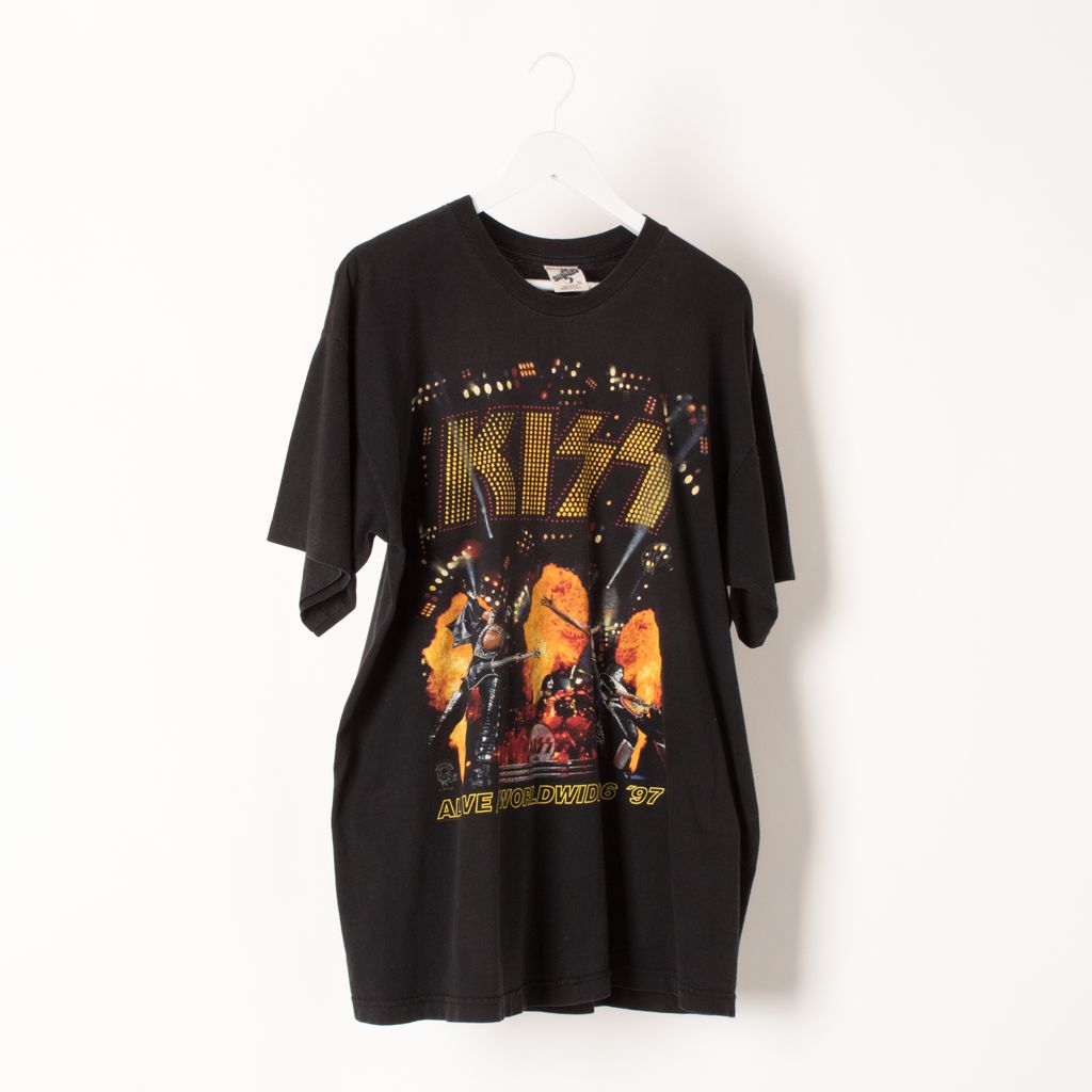 This vintage tee from Kiss's 1996 World Tour is practically one of a kind. Featuring screen printed graphics on front and back, it's 100% cotton and in incredible condition for its age.