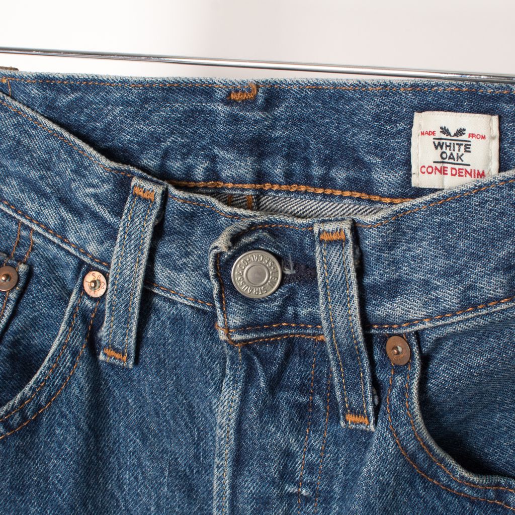 Vintage Levi's 501 style jean, dark denim wash featuring the classic five pocket.